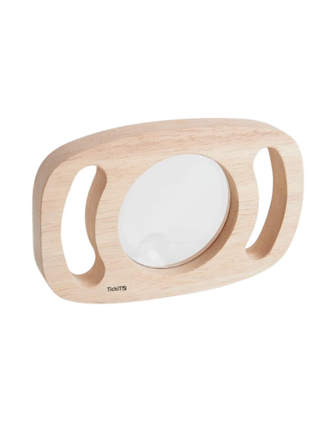 Diseño ergonómico: Fabricada con un marco de madera de caucho sólido, la lupa cuenta con asas amplias y redondeadas que facilitan su agarre y manejo por parte de los más pequeños.