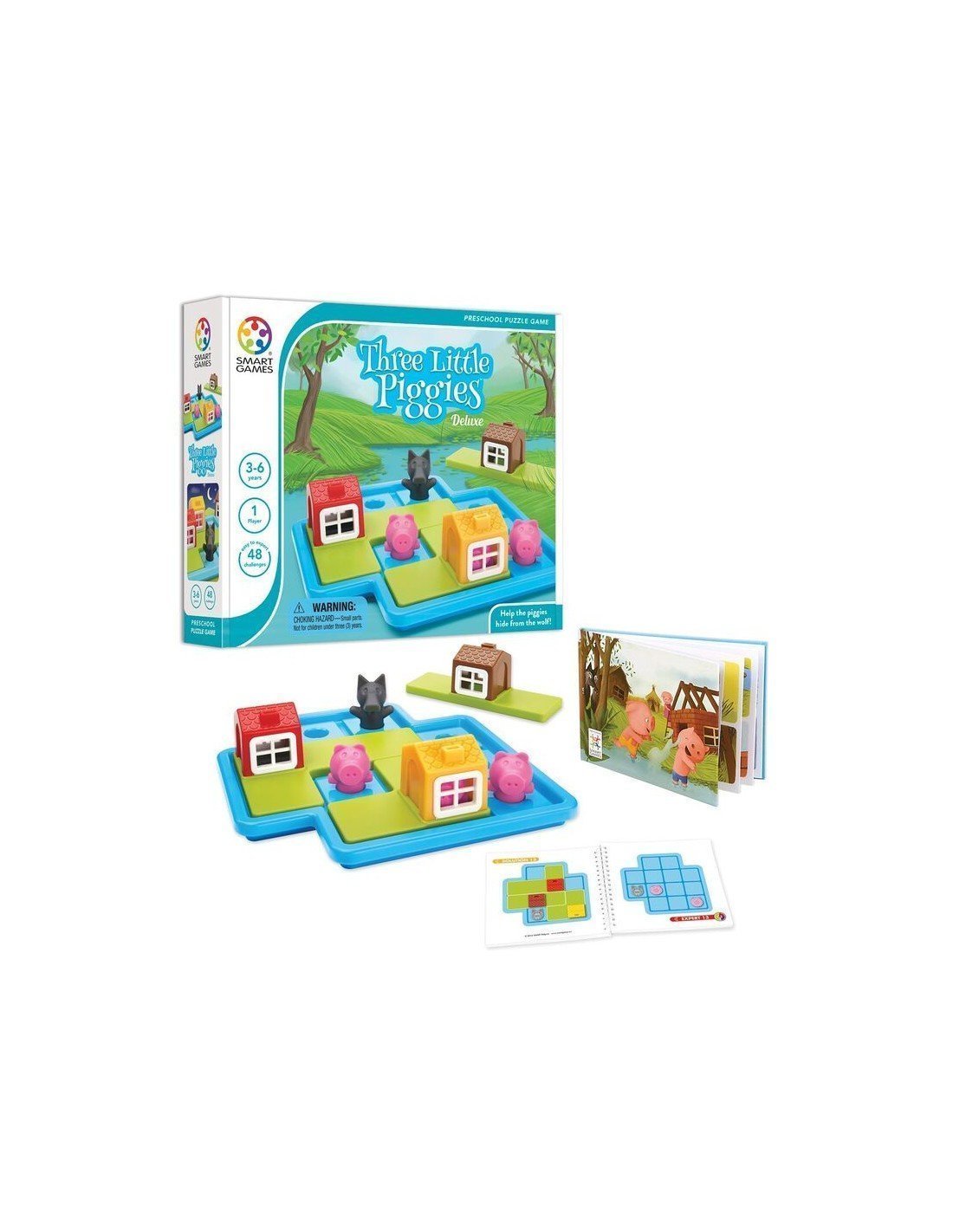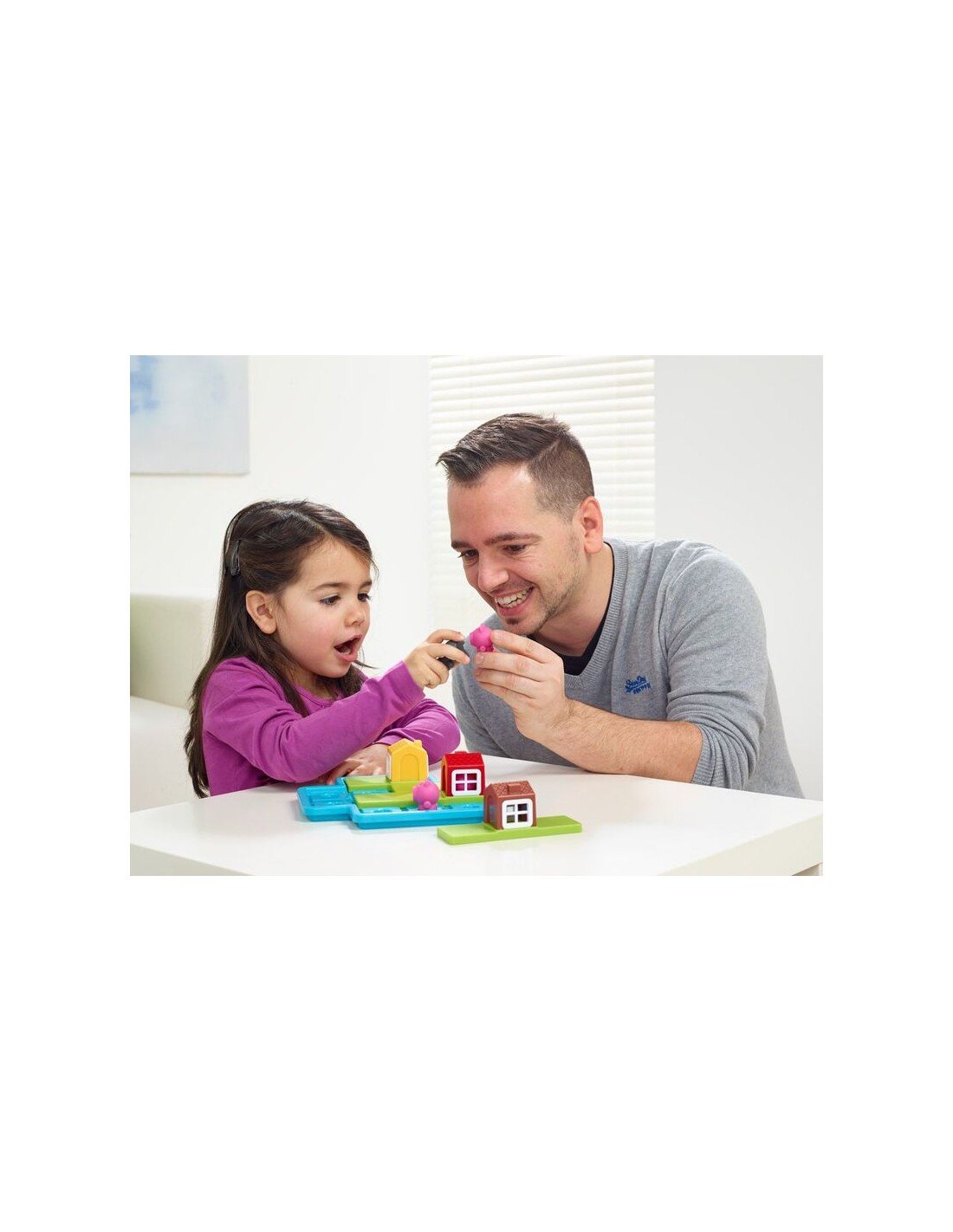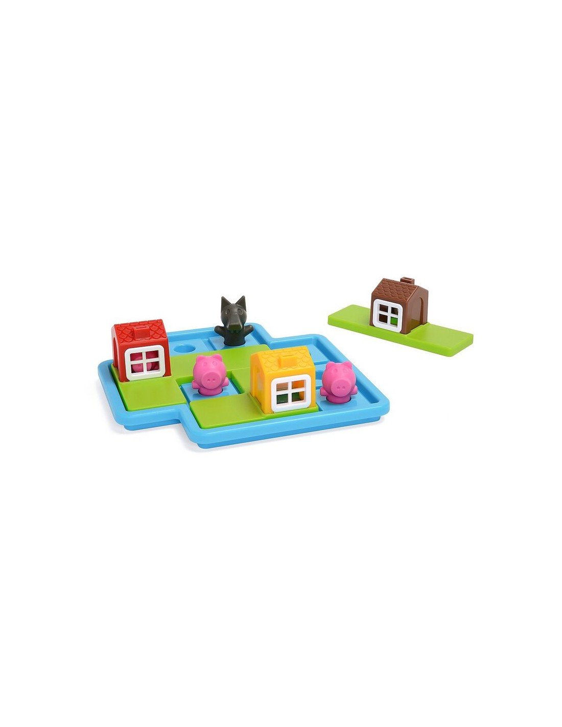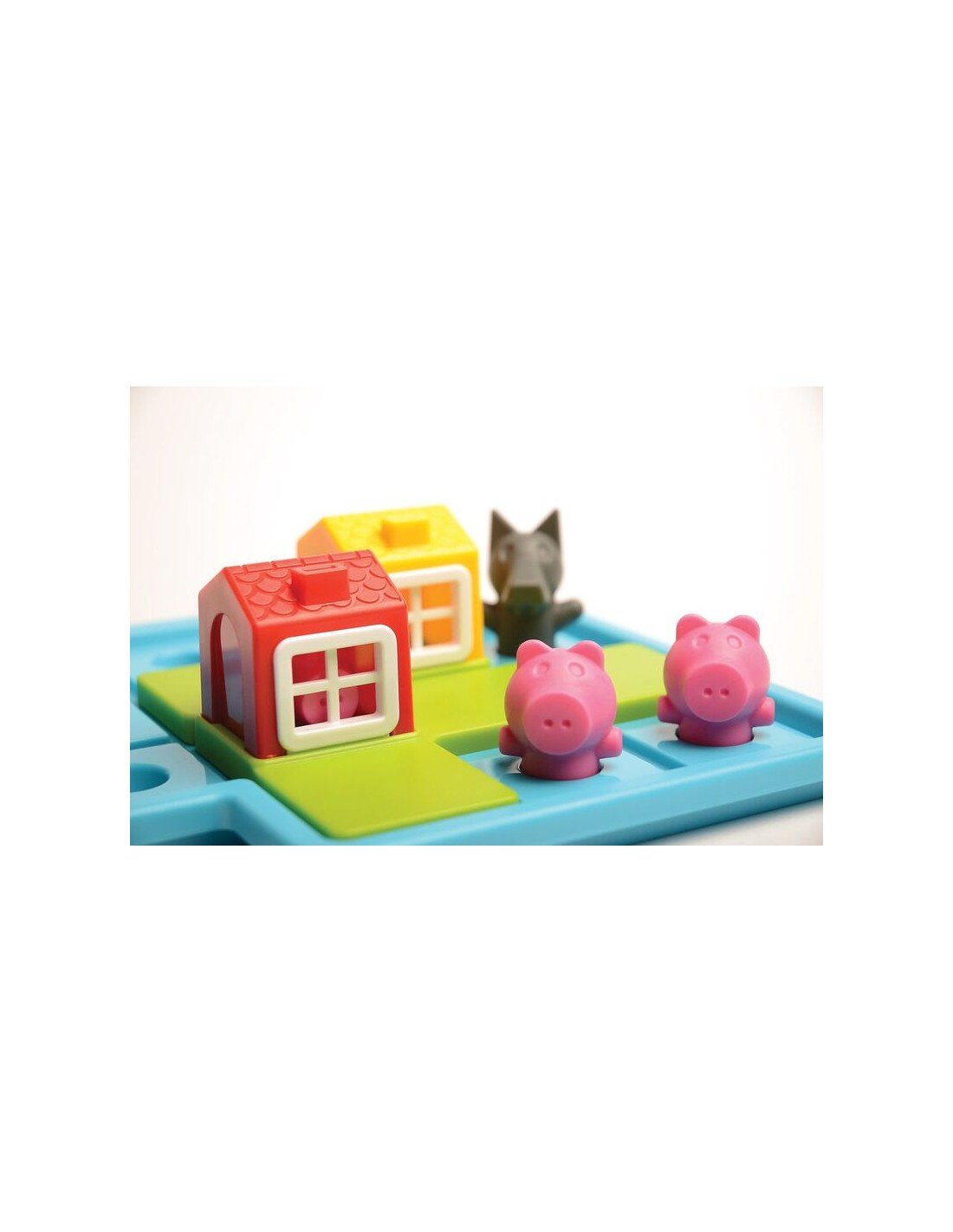 El objetivo es ayudar a los cerditos a colocarse correctamente en el tablero y protegerlos del lobo… encajando las casas de la forma adecuada. A medida que avanzan, los retos se complican, obligando a pensar, probar y resolver paso a paso.