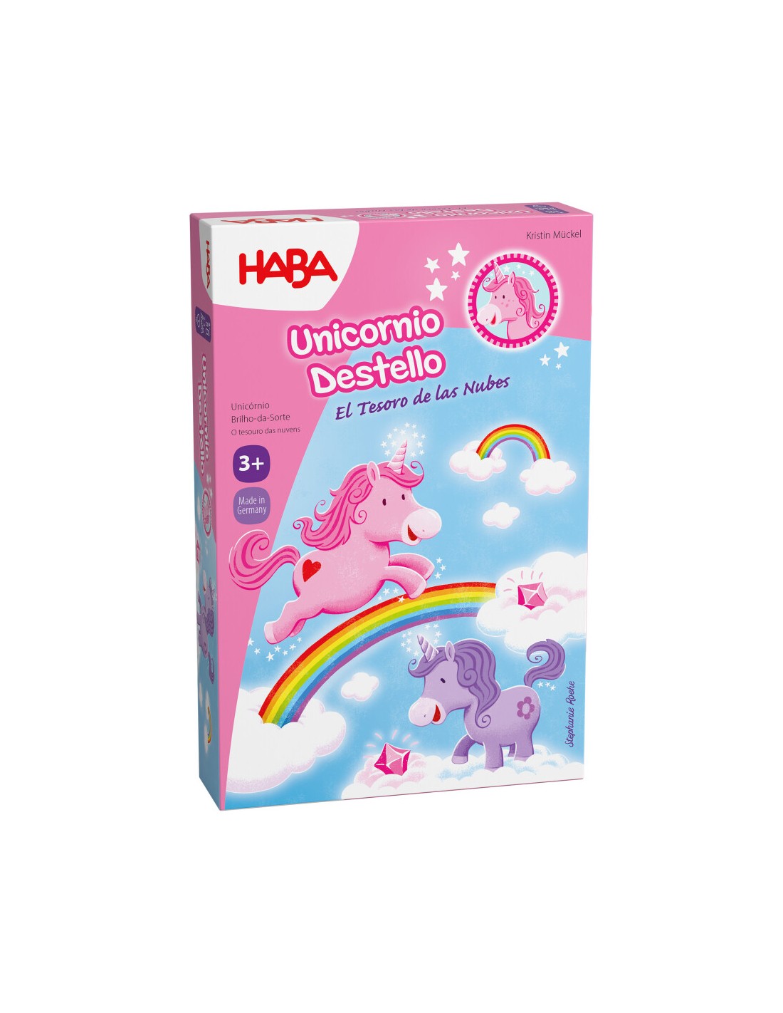 Unicornio Destello es un juego de mesa infantil pensado para introducir a los más pequeños en el mundo de los juegos de reglas. Los jugadores recorren un camino con sus unicornios recogiendo cristales de colores, siguiendo las indicaciones del dado.