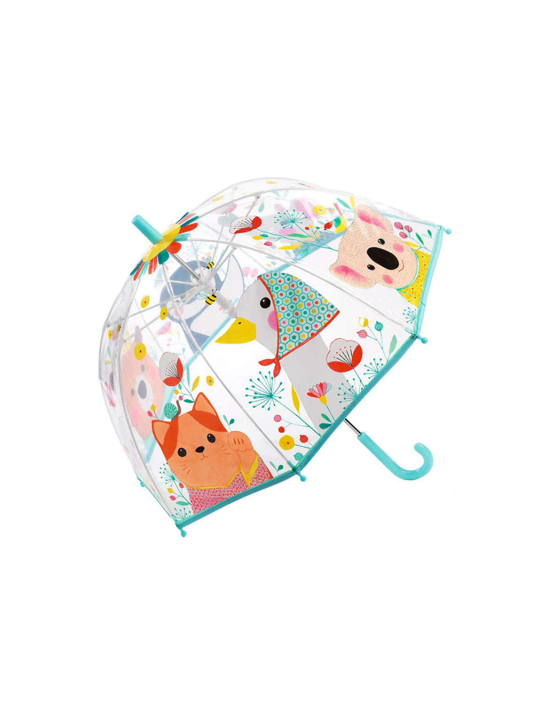 El paraguas transparente es un modelo infantil pensado para que los peques disfruten de la lluvia con total comodidad y seguridad. Su material semitransparente permite ver a través mientras caminan, algo clave para que se sientan seguros y conectados con su entorno incluso en días grises