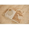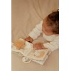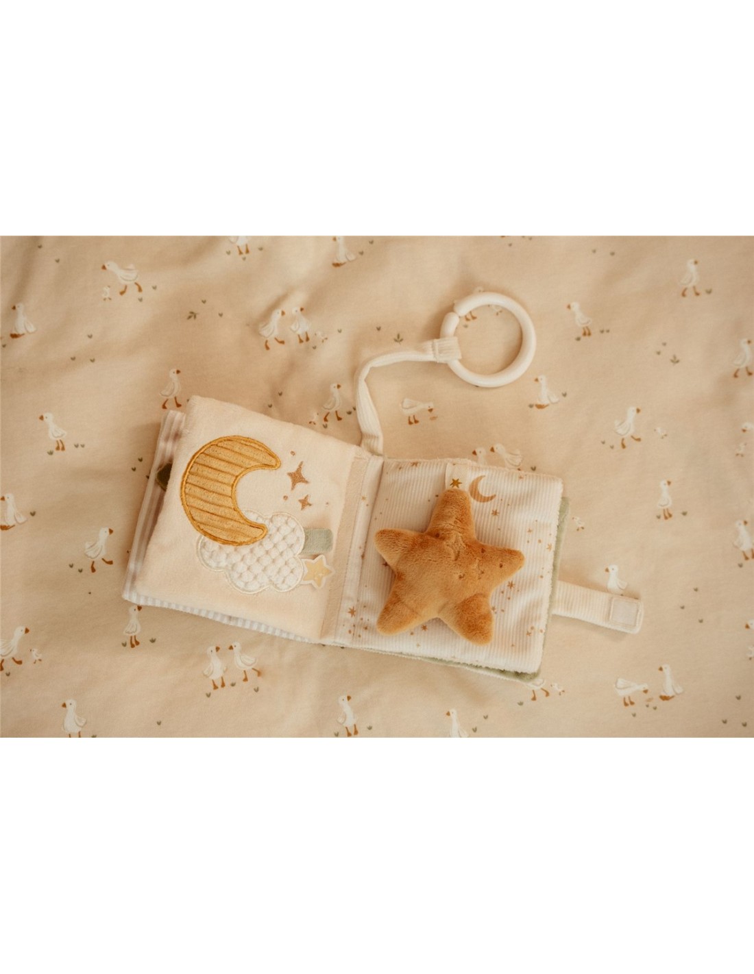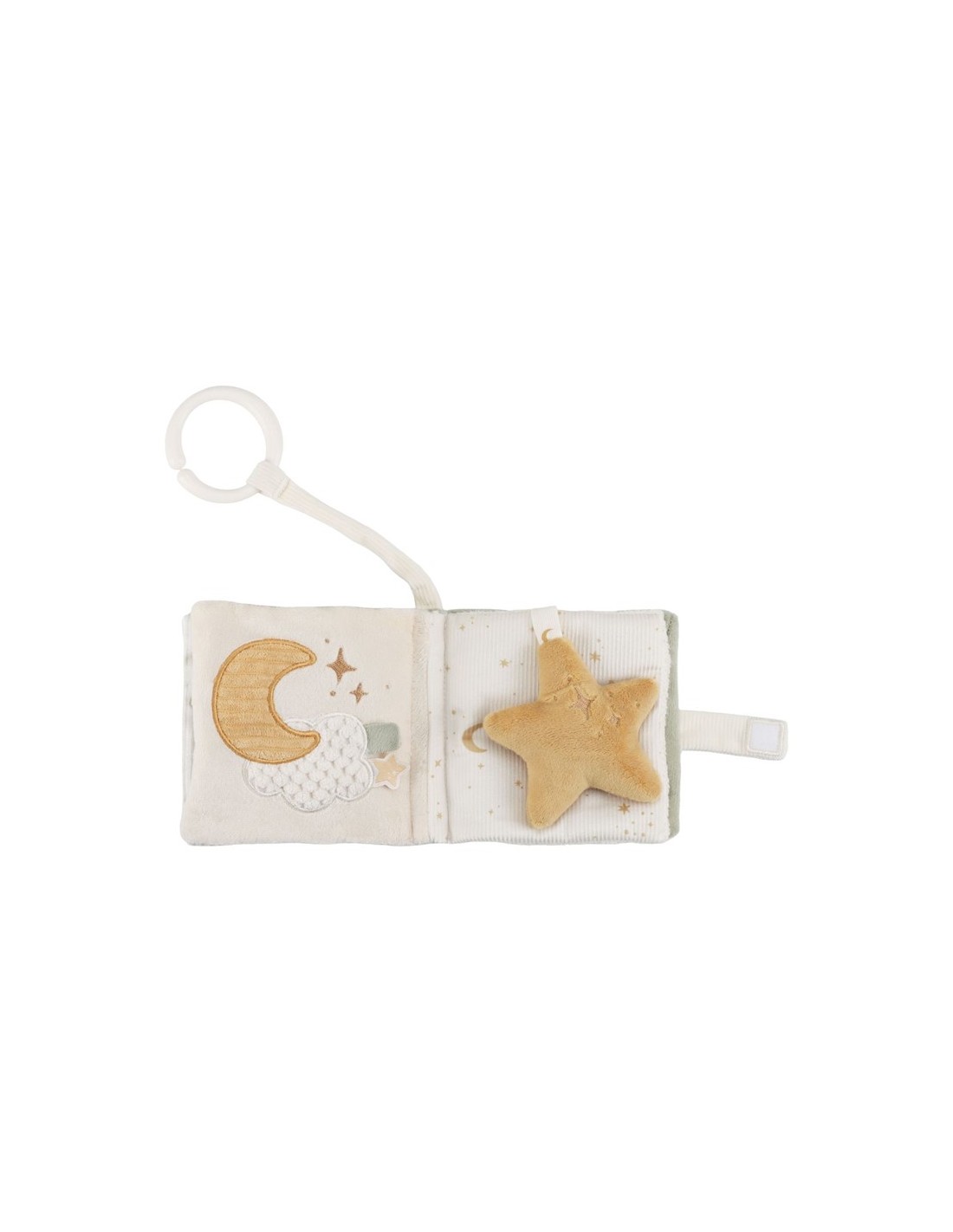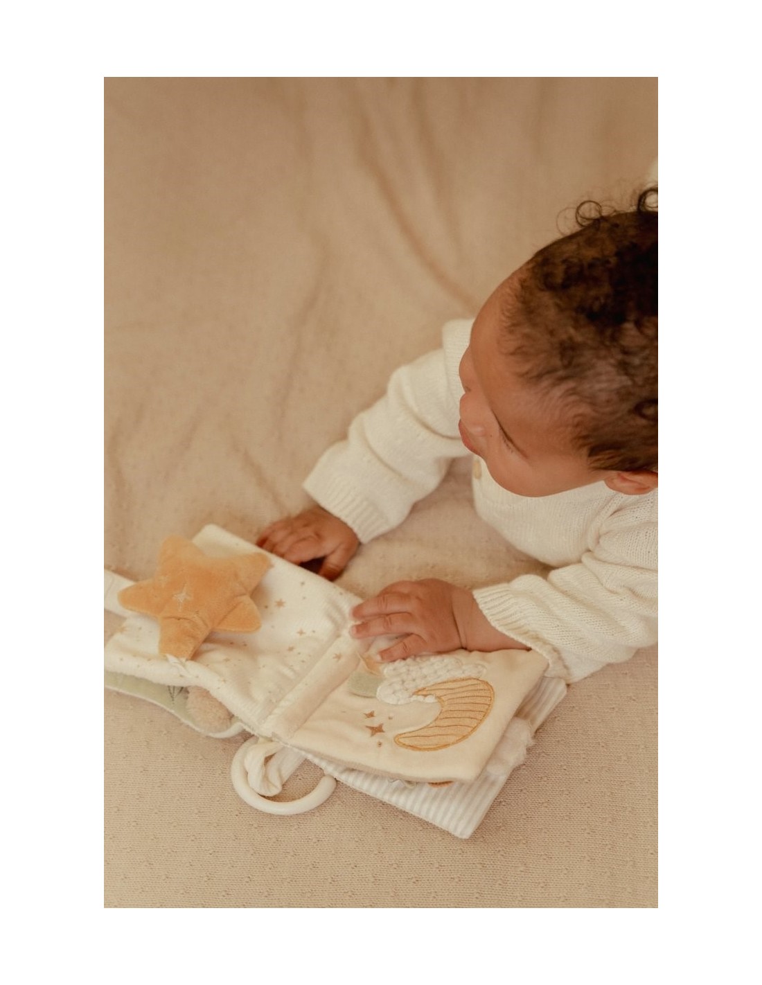 Con librito blando de actividades con anilla, ¡tu pequeño siempre tendrá algo que descubrir! Este suave librito está lleno de texturas divertidas, páginas crujientes y tiernas ilustraciones que estimulan los sentidos. Fácil de sujetar y de colocar en el cochecito, ¡para que la diversión llegue a todas partes! Hecho de materiales suaves, perfecto para las manitas de los pequeños. ¡Un primer librito ideal para hojear, sentir y maravillarse!