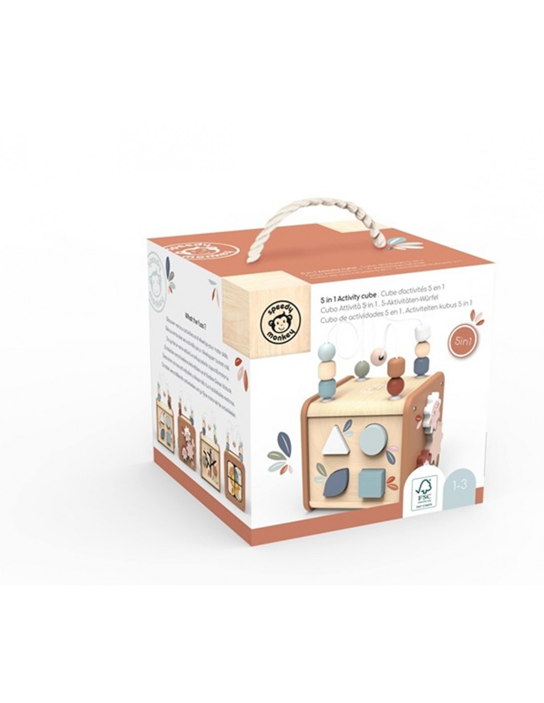 Este cubo de actividades 5 en 1 es un juguete completo y muy estimulante para las primeras etapas del desarrollo. Reúne diferentes propuestas de juego manipulativo en un solo elemento, invitando a explorar, girar, encajar, deslizar y mover desde todos los ángulos.