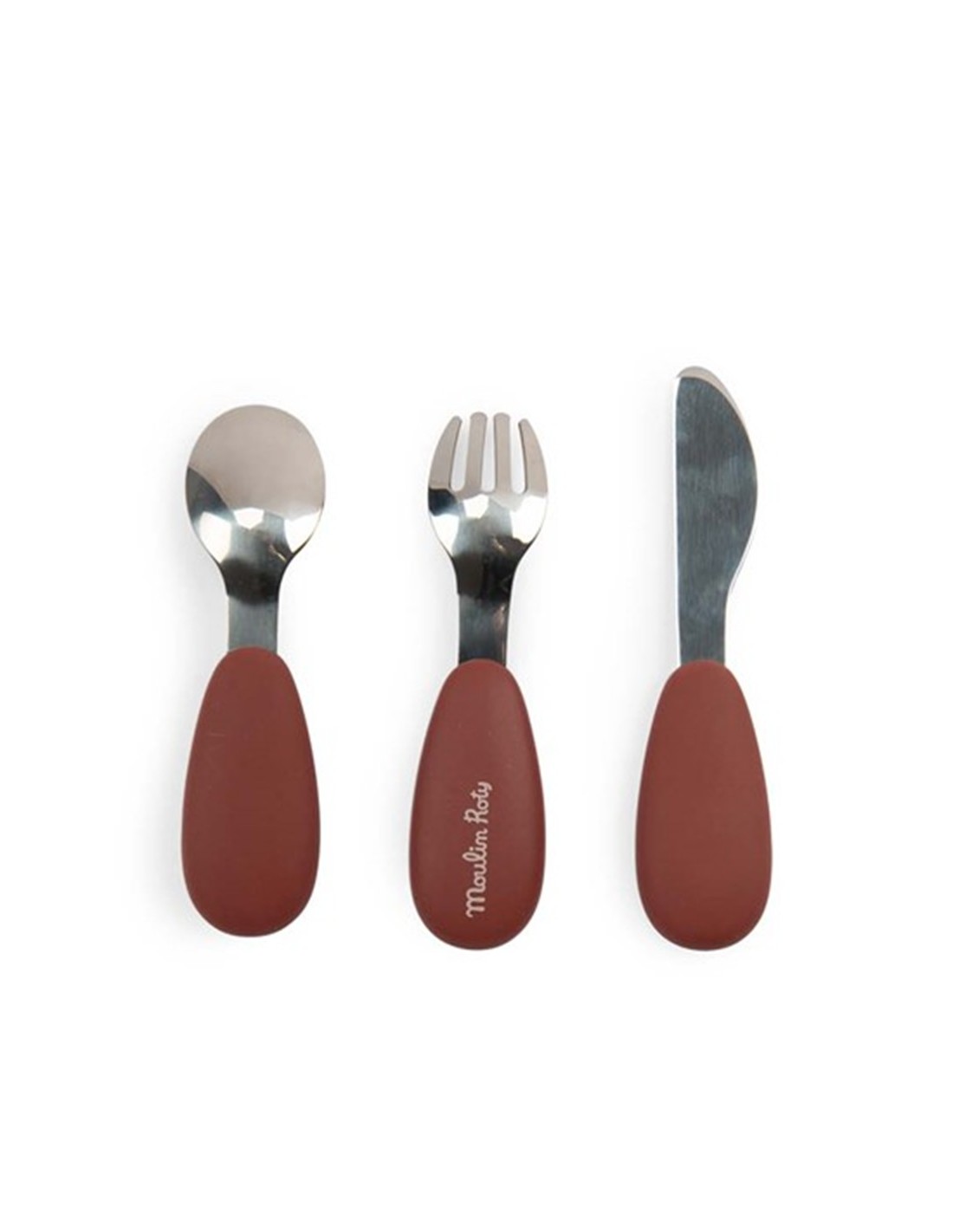 La combinación de acero inoxidable en la parte funcional y silicona en el mango ofrece resistencia y agarre seguro, ayudando a que los peques ganen confianza mientras practican.