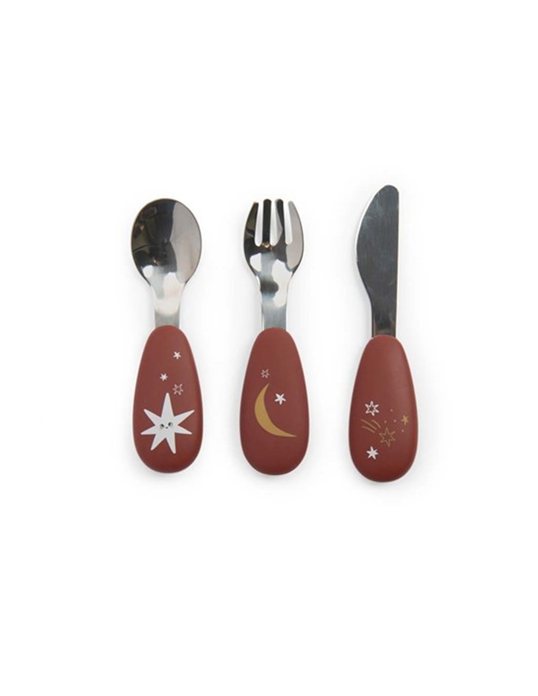 Incluye cuchara, tenedor y cuchillo infantil con mango ergonómico de silicona, suave al tacto y fácil de sujetar por manos pequeñas. Los diseños delicados y los tonos cálidos convierten cada comida en un momento más especial.