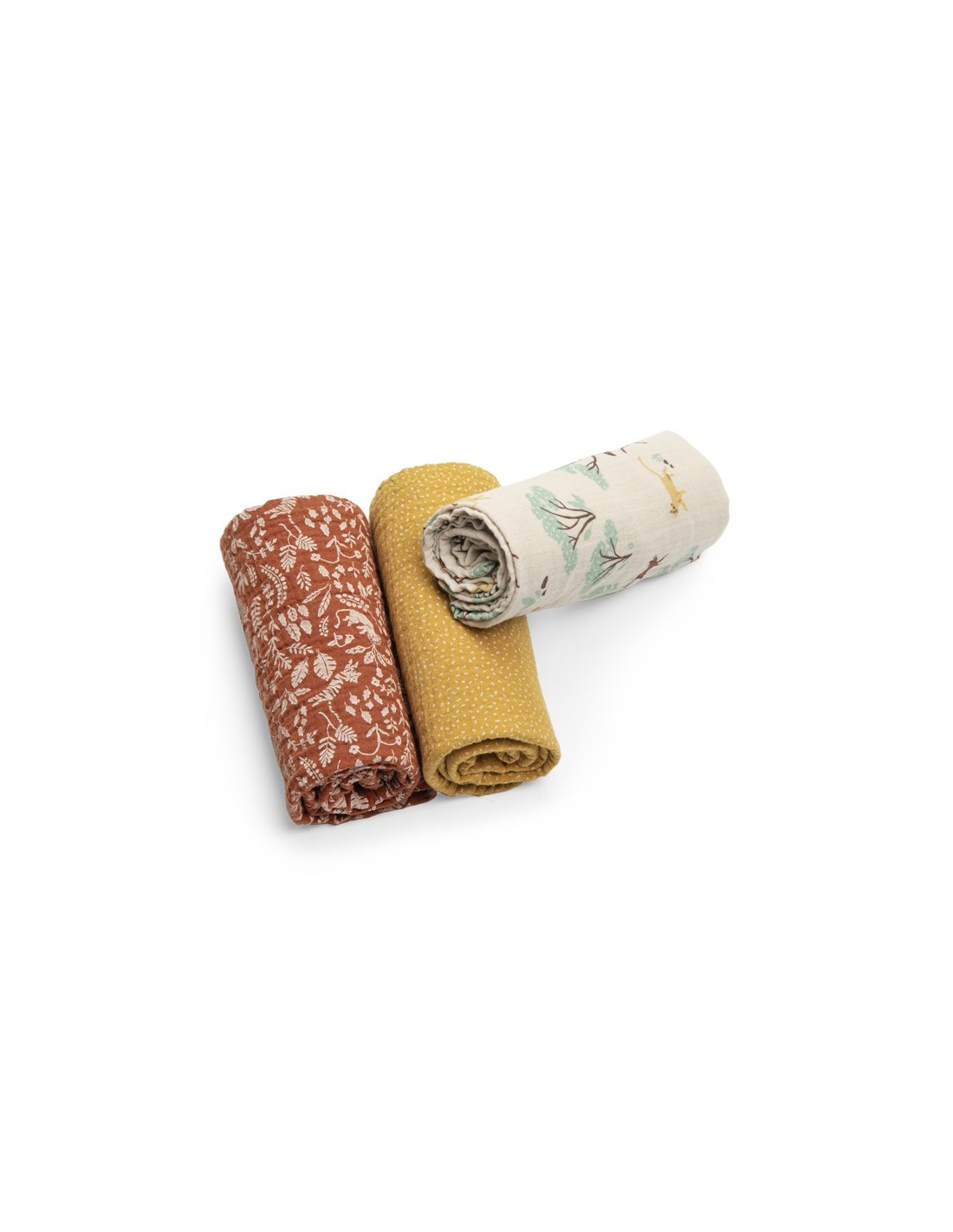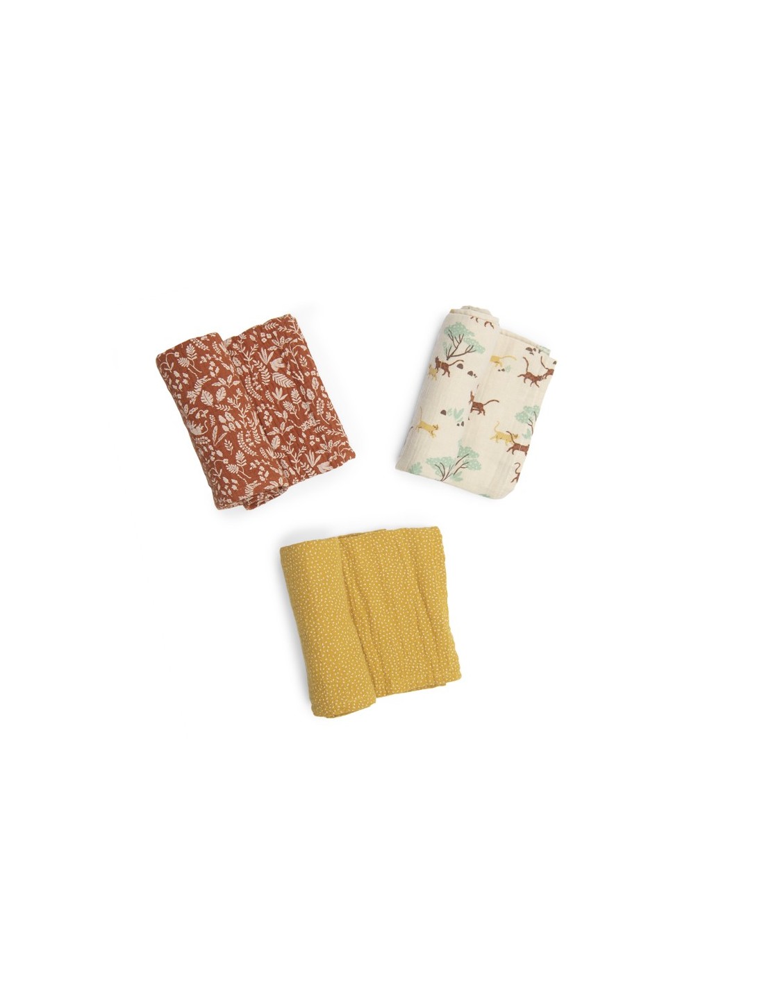Un imprescindible en el día a día con el bebé. Este bonito juego de 3 muselinas suaves y ligeras está diseñado para acompañar a las familias en multitud de momentos cotidianos.