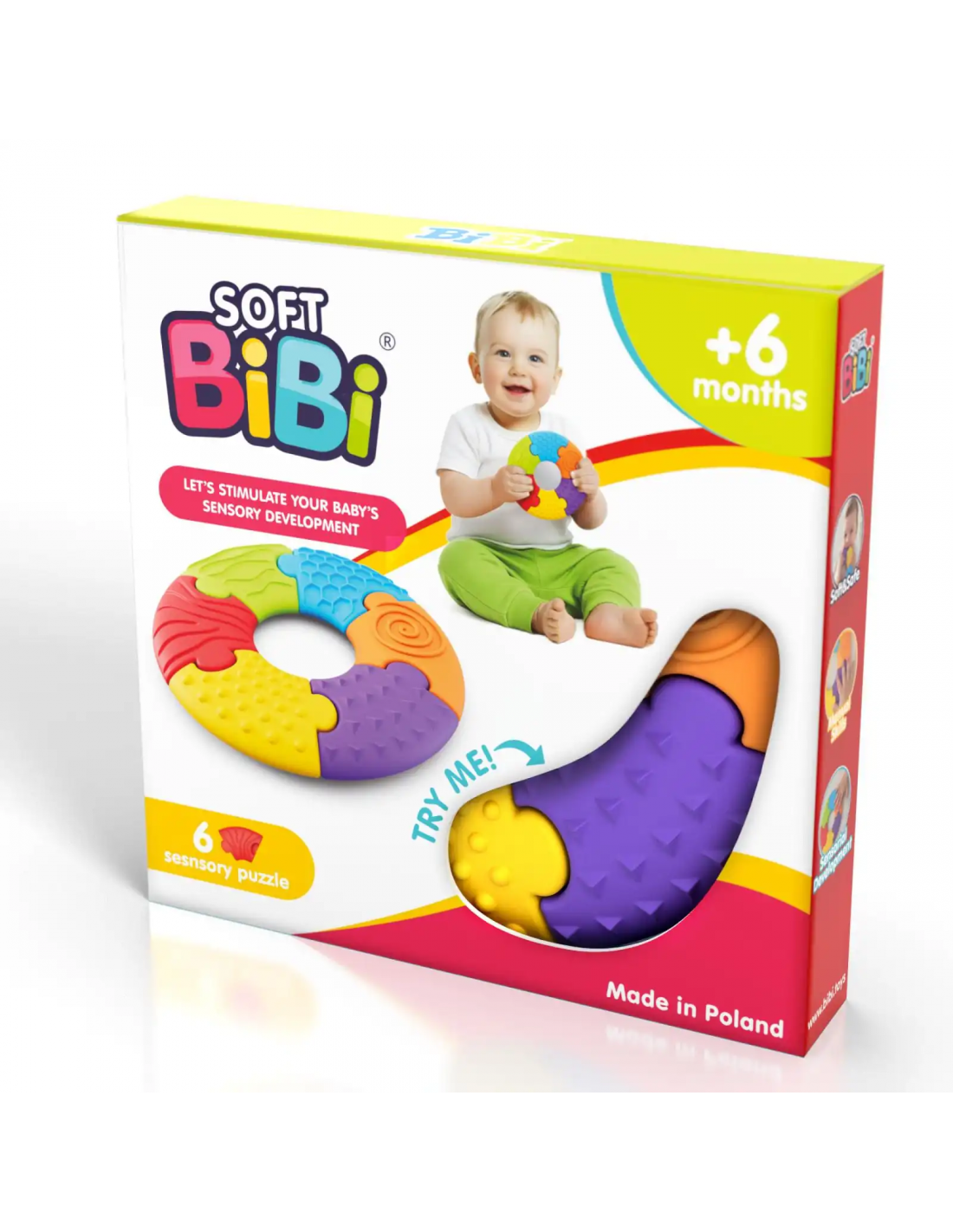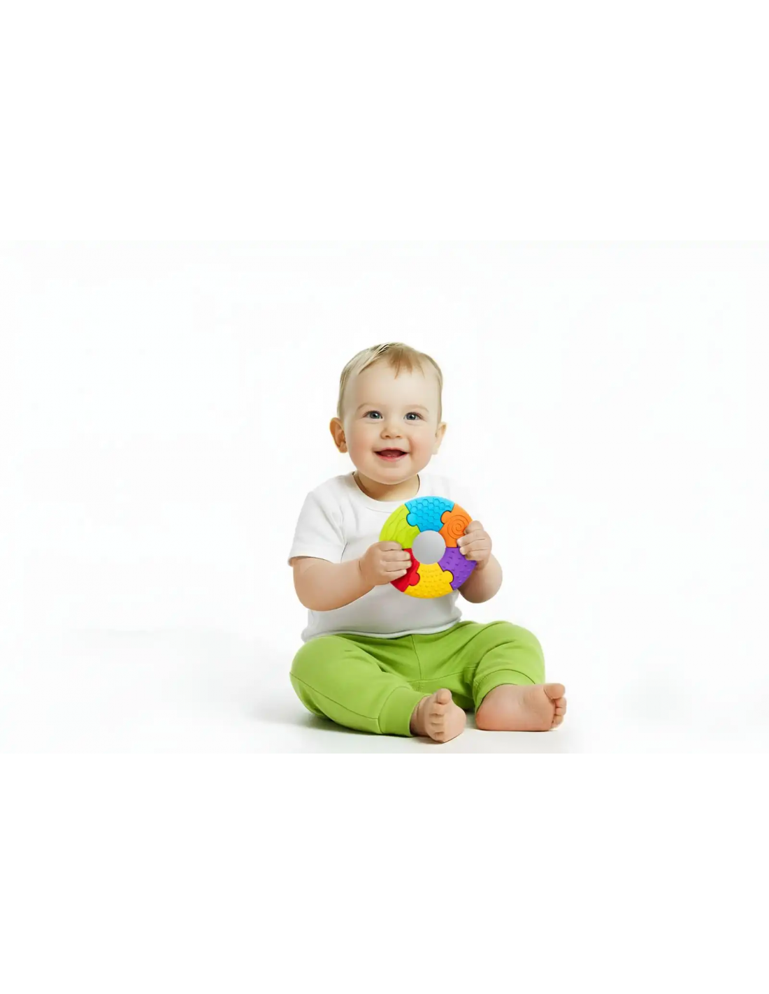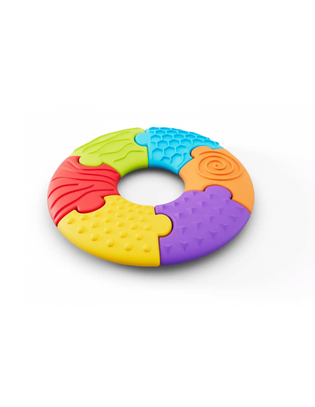 Sensory Puzle - Cículo es un colorido rompecabezas sensorial que apoya el desarrollo del bebé a través del juego y el descubrimiento de diversos estímulos táctiles desde los primeros meses de vida.