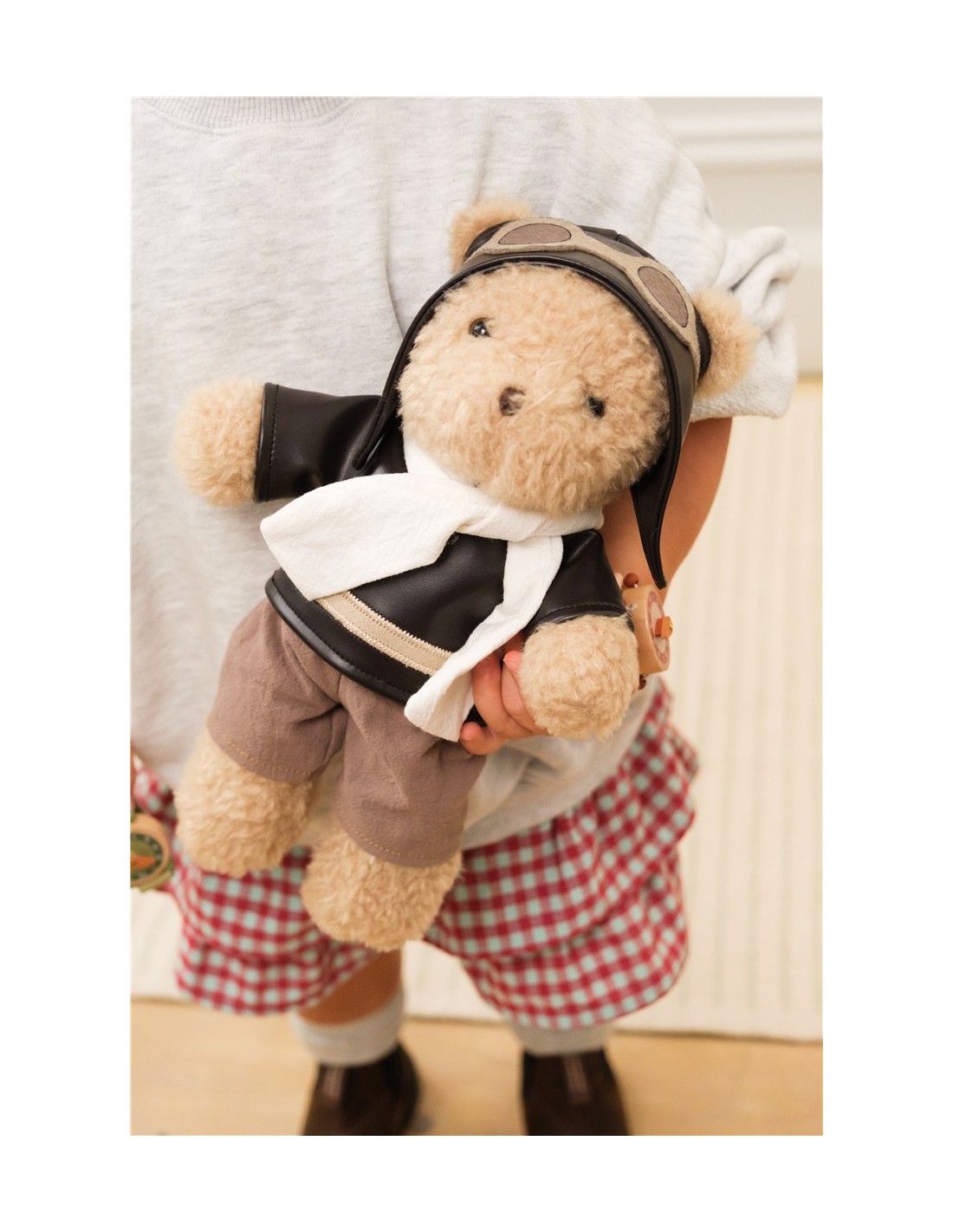 Conoce a este aventurero oso piloto, listo para despertar sueños de viajes lejanos. Con su traje de aviador vintage, texturas suaves y expresión tierna, invita al juego imaginativo y a los abrazos más tiernos. Un encantador compañero de peluche que fomenta la narración de historias, la confianza y un sinfín de vuelos de imaginación.