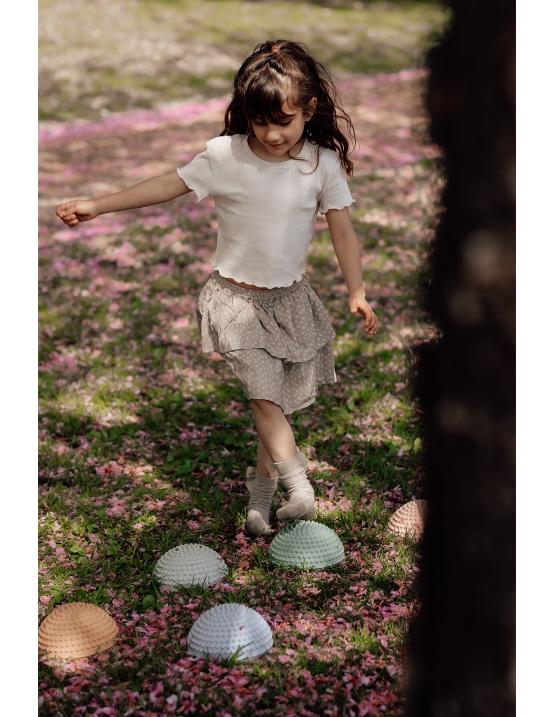 Este set de cuatro piedras sensoriales está diseñado para entrenar el equilibrio y el movimiento de los niños de una manera divertida y segura. Con base plana y superficie redondeada, cada piedra incluye pequeños dientecitos que no solo mejoran la estabilidad, sino que también estimulan el sentido del tacto, potenciando el desarrollo sensorial.