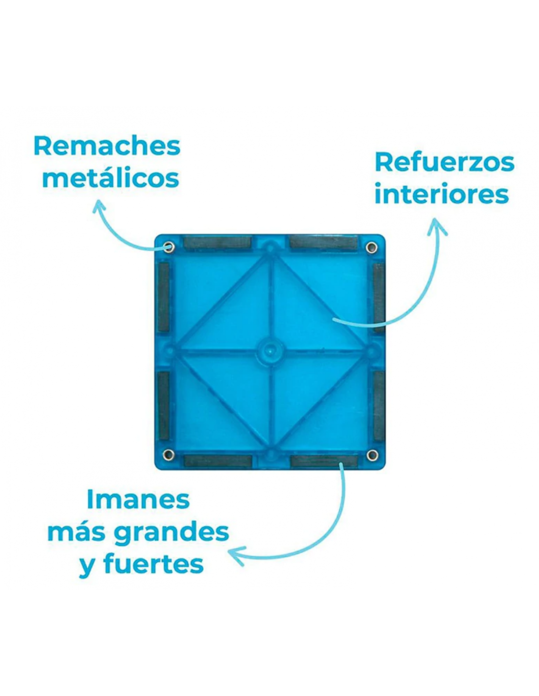 Las piezas cuentan con refuerzos interiores y potentes y gruesos imanes que permiten una unión fuerte, aportando máxima estabilidad a las construcciones. Los lados nunca se repelen.