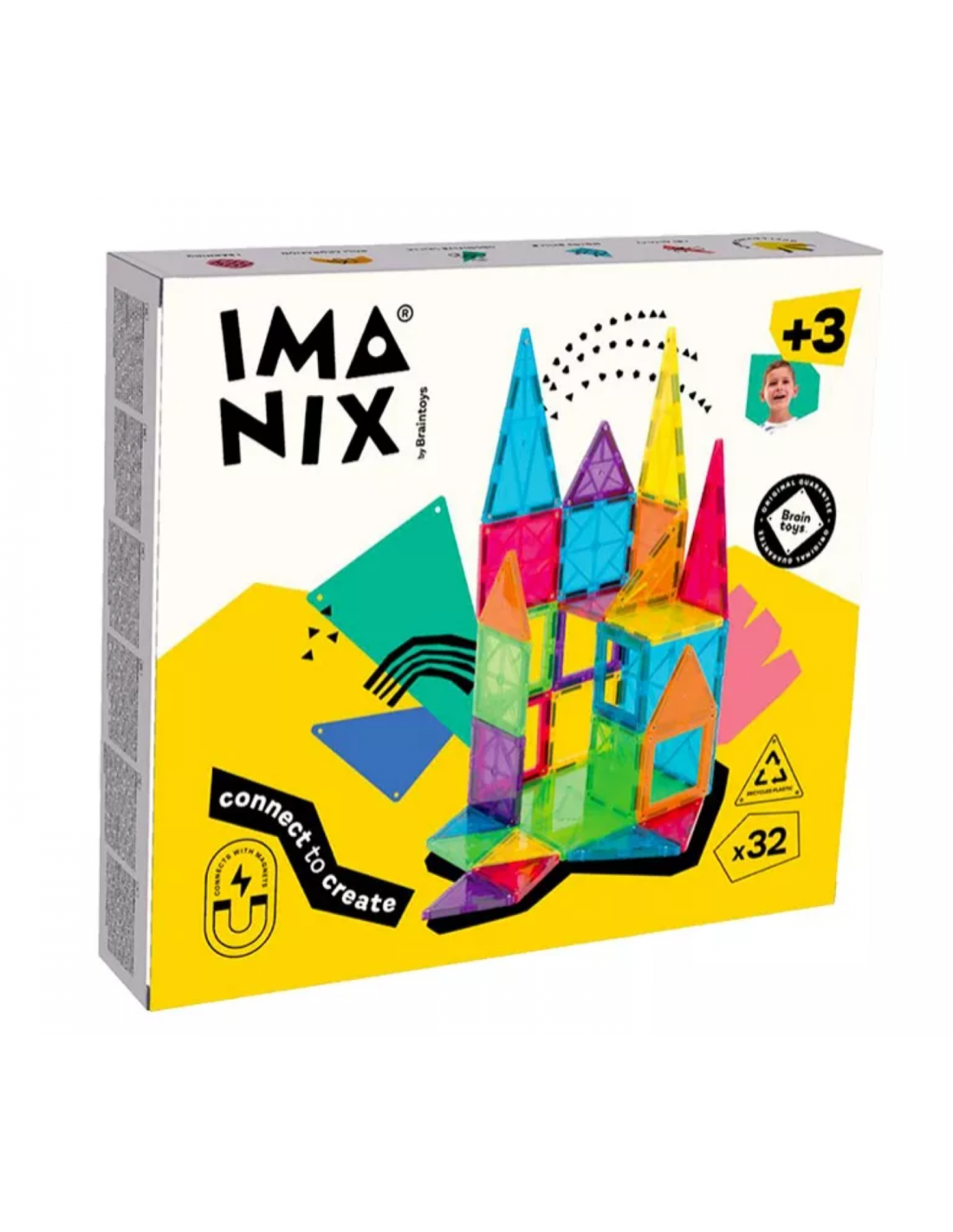 Juego de construcción magnético Imanix con 32 piezas translúcidas de colores, de Braintoys.