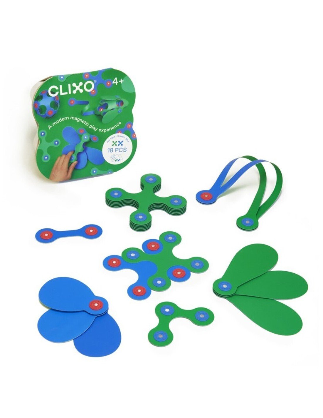 18 piezas en 6 formas únicas de CLIXO y una guía de inicio rápido, ¡Este pack de iniciación tiene el tamaño perfecto para llevarlo de viaje a cualquier sitio, y estará listo inmediatamente para jugar y empezar a construir allá donde estéis!