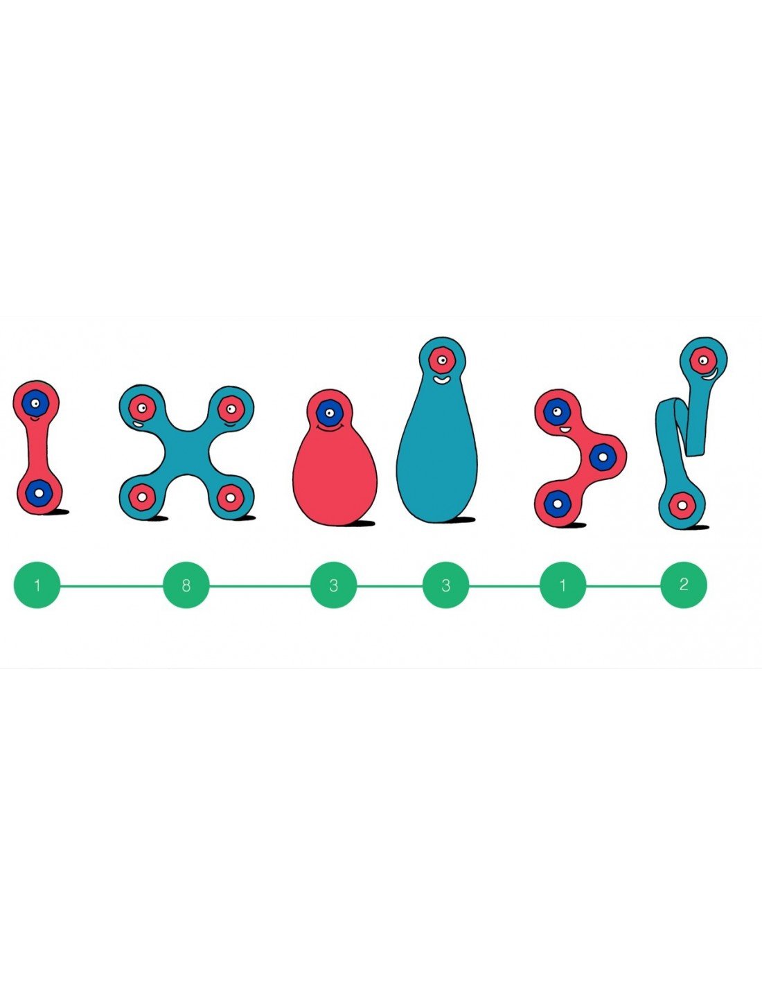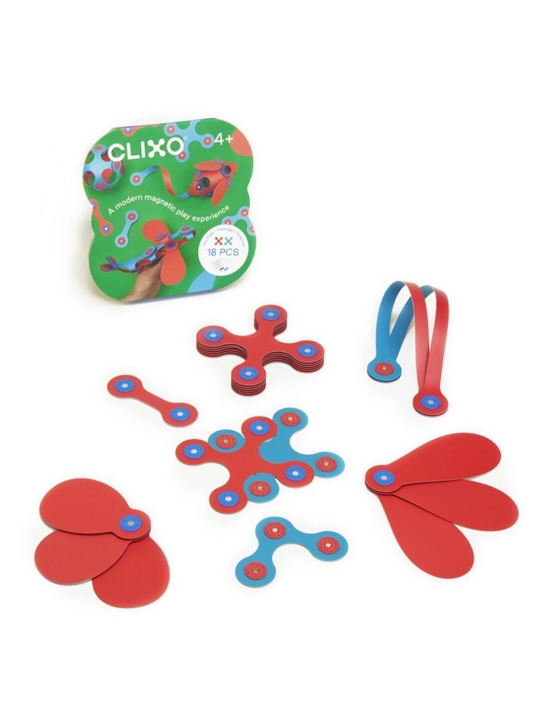18 piezas en 6 formas únicas de CLIXO y una guía de inicio rápido, ¡Este pack de iniciación tiene el tamaño perfecto para llevarlo de viaje a cualquier sitio, y estará listo inmediatamente para jugar y empezar a construir allá donde estéis!