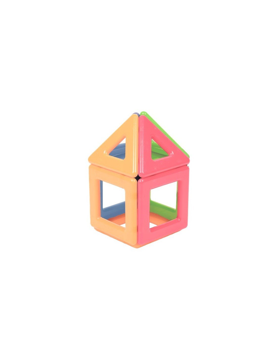 Este set de construcción cuenta con piezas imantadas de gran tamaño con forma de triángulos y cuadrados huecos, pensadas para que los más pequeños puedan manipularlas con facilidad y construyan sus primeras estructuras en 2D y 3D.
