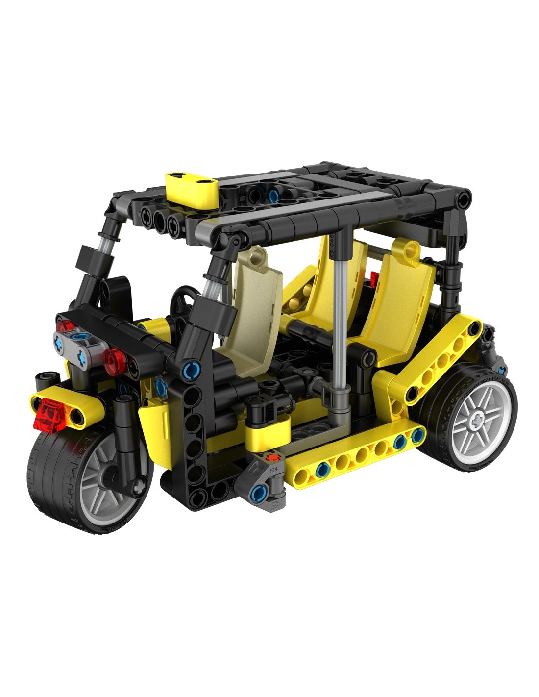 El iMMaster 2 en 1 permite montar dos modelos diferentes: una carretilla elevadora y un coche turístico de tres ruedas, ofreciendo el doble de diversión y aprendizaje en un solo juego.