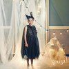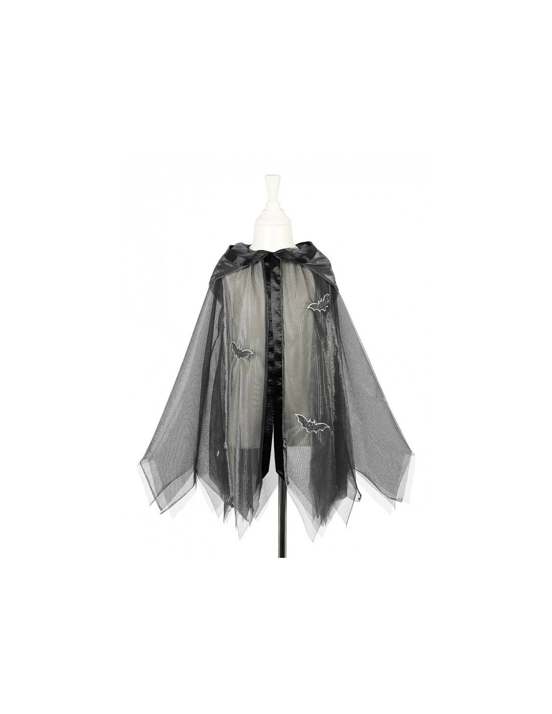 Capa de bruja con detalles de murciélagos, ligera y brillante, perfecta para completar el look de Halloween.