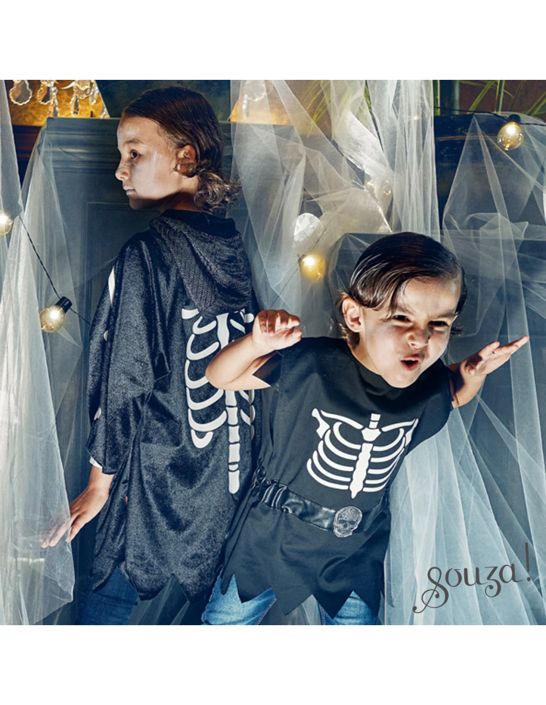 El largo de la túnica de Halloween es de 43 cm (3-4 años) o 53 (5-7 años).