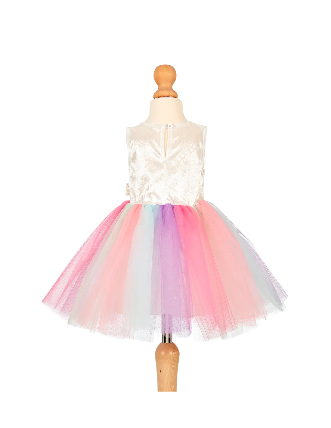 Con el Vestido unicornio de Souza, cada peque puede convertirse en el protagonista de su propio cuento de hadas. Este vestido, diseñado para peques de 2 años (92 cm), combina elegancia y fantasía en una prenda única. Su falda de tul en tonos pastel y su cuerpo adornado con lentejuelas iridiscentes crean una atmósfera mágica que invita a soñar despierto.
