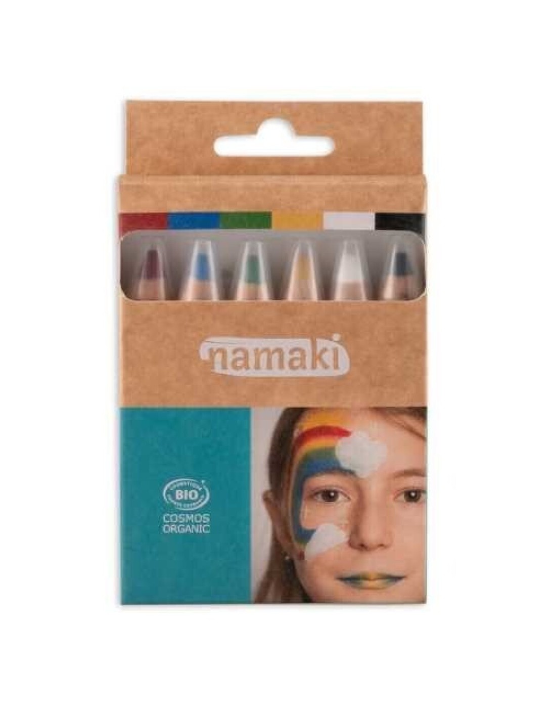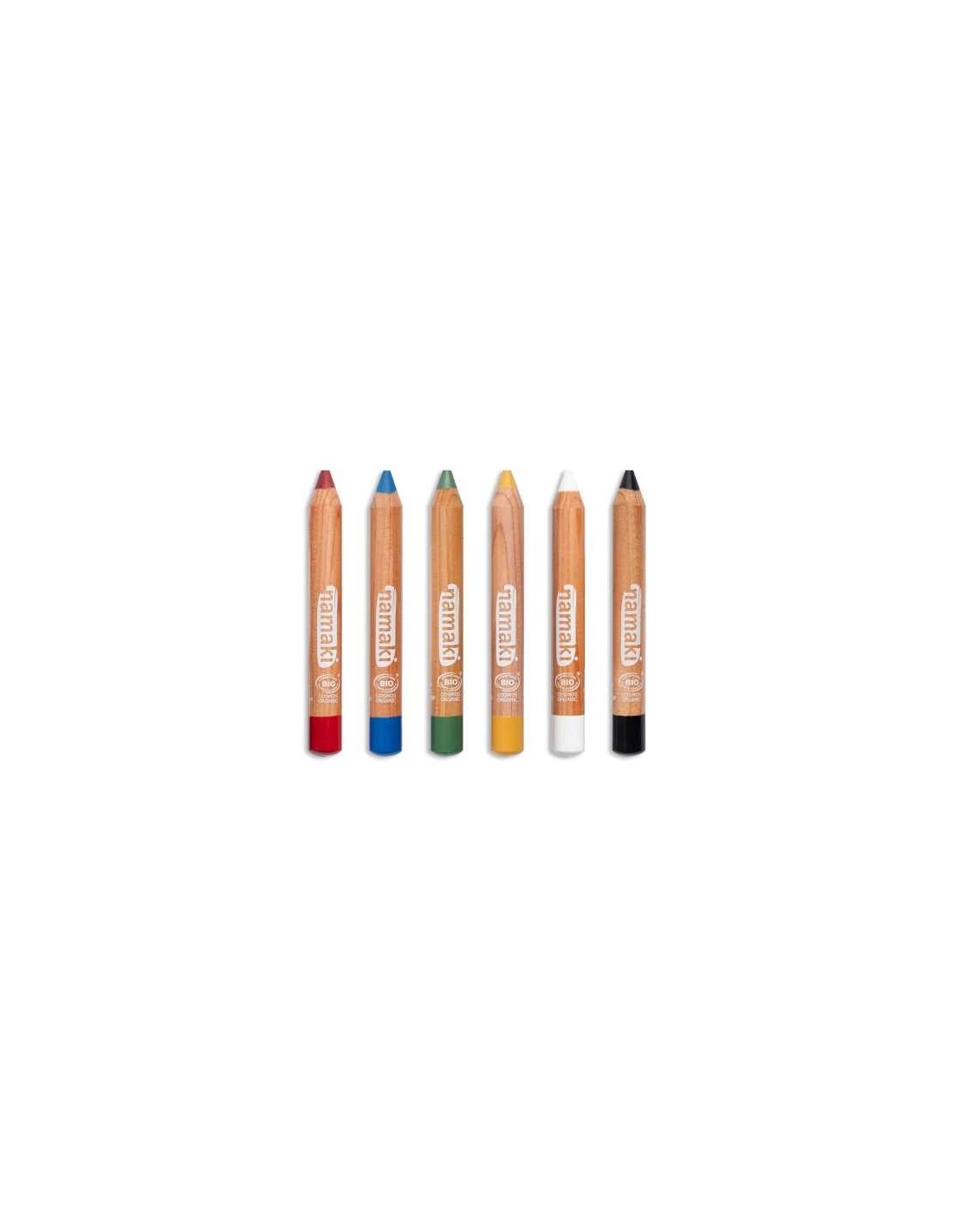 Pack de 6 lápices de maquillaje de Namaki con los que decorar la cara y el cuerpo de los peques para sus fiestas de disfraces preferidas.