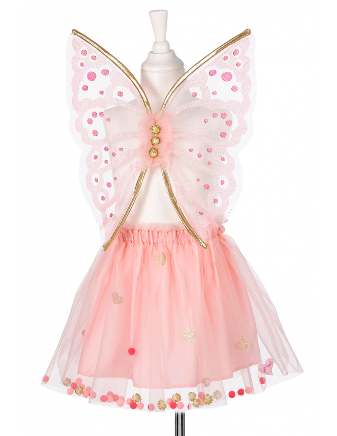 El disfraz Lusianne combina delicadeza y magia en un precioso conjunto de falda de tul rosa y alas a juego, perfecto para dar vida a infinitas historias de hadas. La falda, suave y ligera, presenta detalles brillantes que aportan un toque especial sin renunciar a la comodidad.