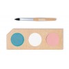 Modo de empleo: El maquillaje se usa con agua y se aplica sobre la piel con el pincel. El desmaquillado se realiza fácilmente con agua tibia y un poco de jabón. Después de su uso, deje el pincel y la paleta de sombras que se sequen antes de guardarlos en la caja.