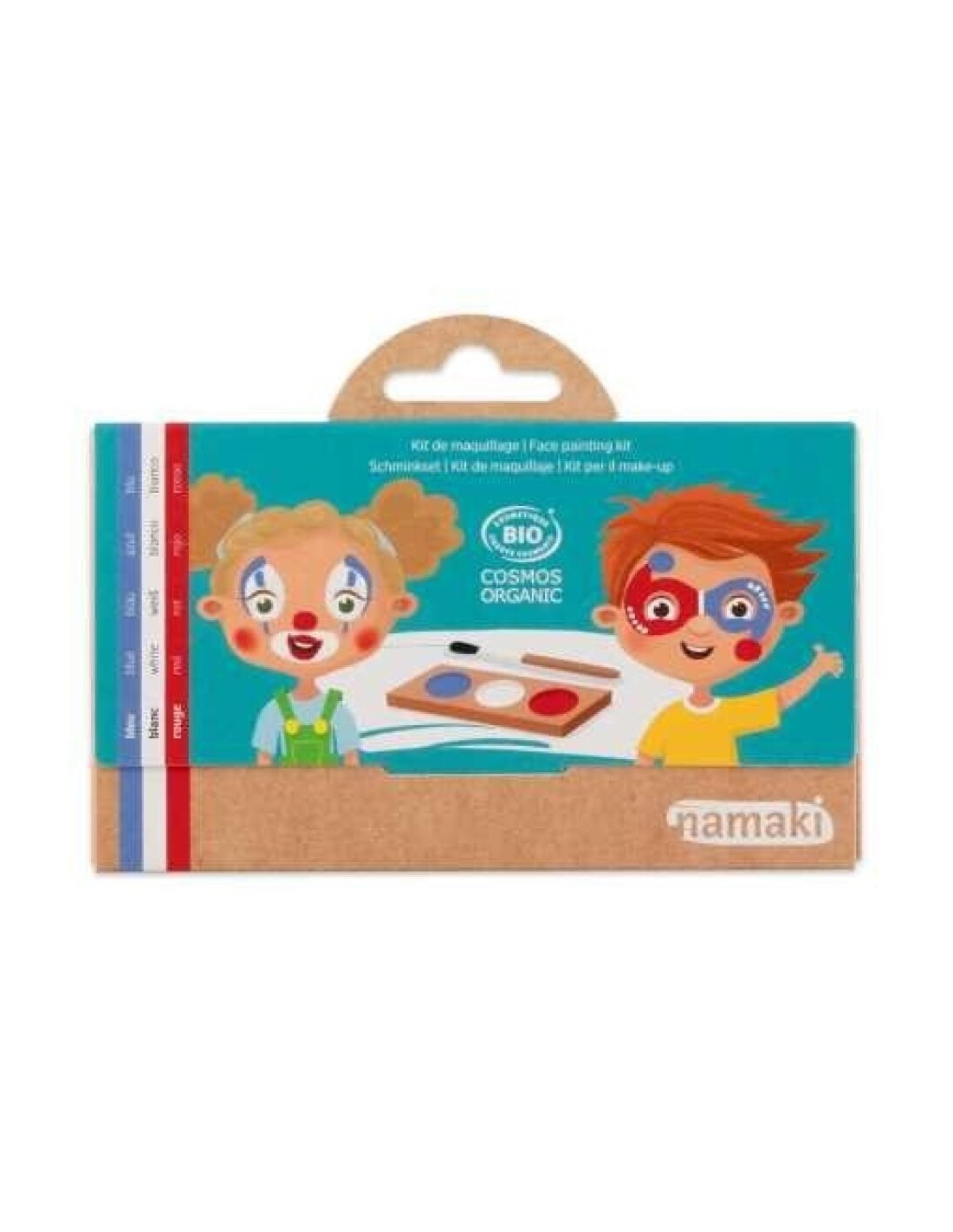 Conviértete en un payaso y arlequín con este kit de maquillaje hipoalergénico y orgánico certificado, al agua, que contiene una paleta de 3 colores.