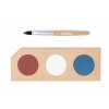 Modo de empleo: El maquillaje se usa con agua y se aplica sobre la piel con el pincel. El desmaquillado se realiza fácilmente con agua tibia y un poco de jabón. Después de su uso, deje el pincel y la paleta de sombras que se sequen antes de guardarlos en la caja.