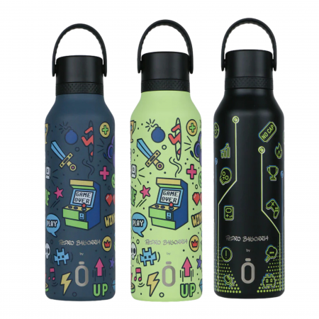 Nuestra botella con recubrimiento cerámico y tapón roscado que mantiene tus bebidas frías durante 24 horas y calientes durante 12 para que te la lleves donde quieras.