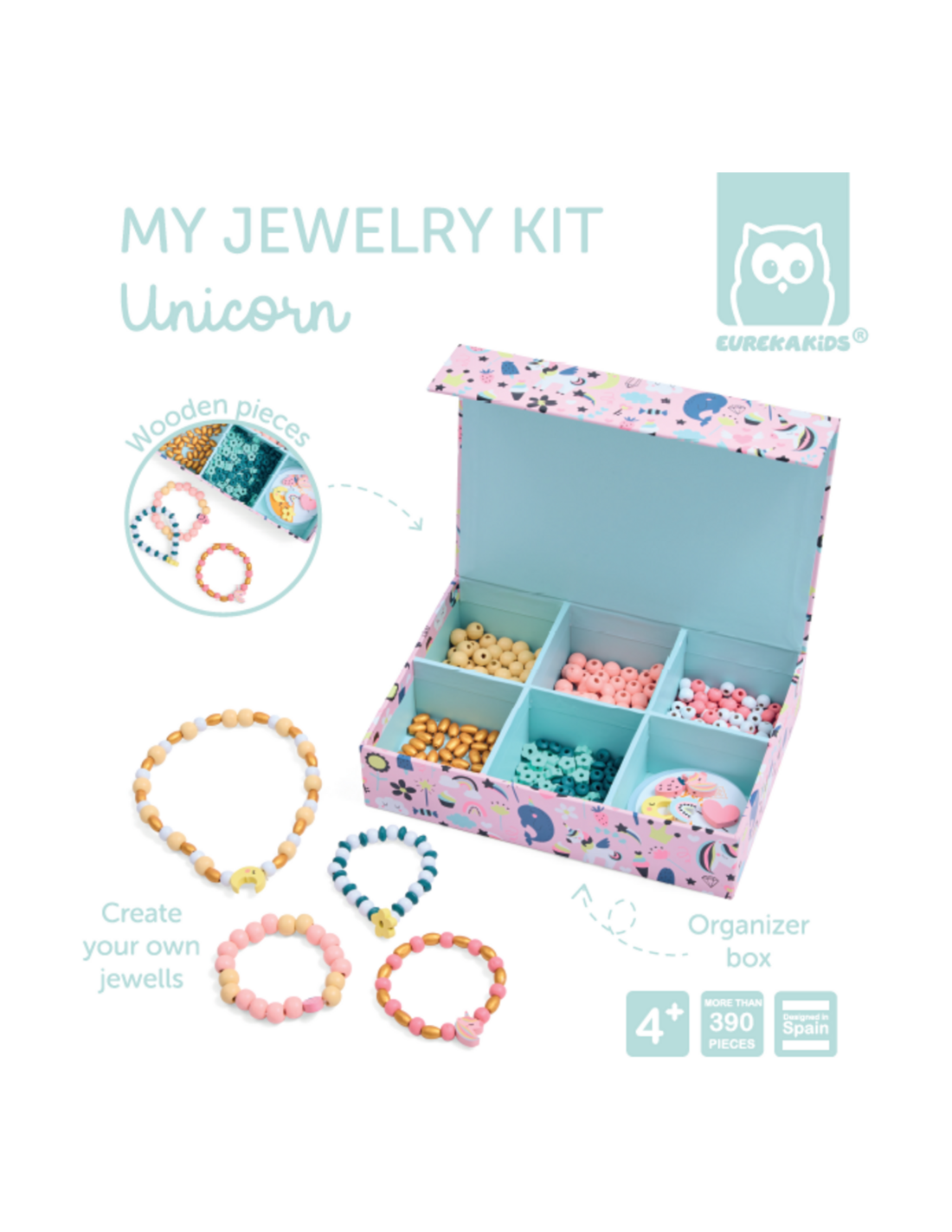 Con este mágico set de joyería temática de unicornios, los niños podrán dar rienda suelta a su creatividad y diseñar collares y pulseras únicos. El kit incluye más de 350 piezas entre cuentas de colores y divertidos accesorios con motivos de unicornios que inspiran horas de diversión y juego imaginativo. La caja organizadora cuenta con 6 compartimentos individuales, ideales para mantener todo en orden y evitar mezclas, facilitando así la creación de diseños personalizados. Perfecto para fomentar la creatividad, desarrollar habilidades manuales y disfrutar de momentos llenos de fantasía.