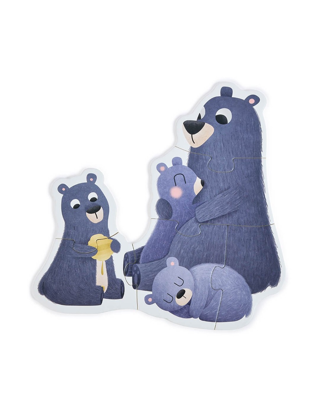 Este puzle crece con ellos y les ayuda a aprender a superar retos de manera progresiva avanzando paso a paso a través de sus distintas dificultades. Incluye 4 puzles distintos con forma de animales, cada uno de ellos con un número y tamaño distinto de piezas. Así a medida adquieren más experiencia, pueden ir incrementando la dificultad. La dificultad del puzle está relacionada con el número de animales que aparecen en la ilustración, ayudándoles así a entender el concepto de cantidad y a aprender a contar.