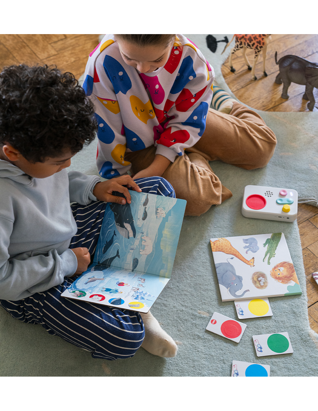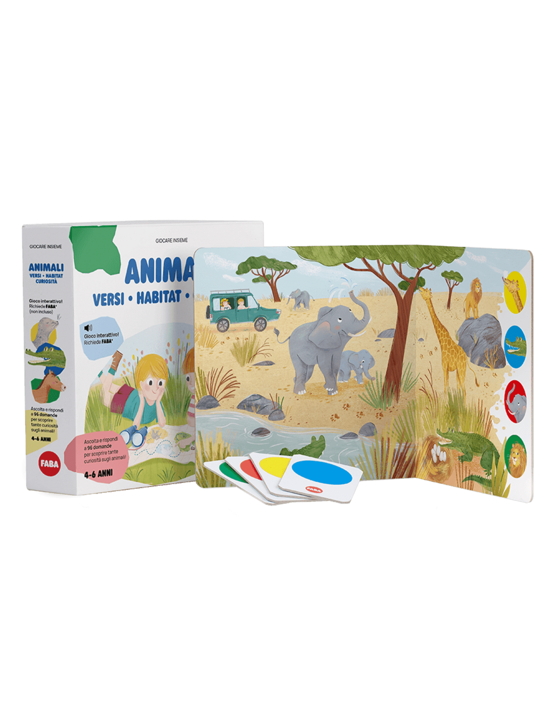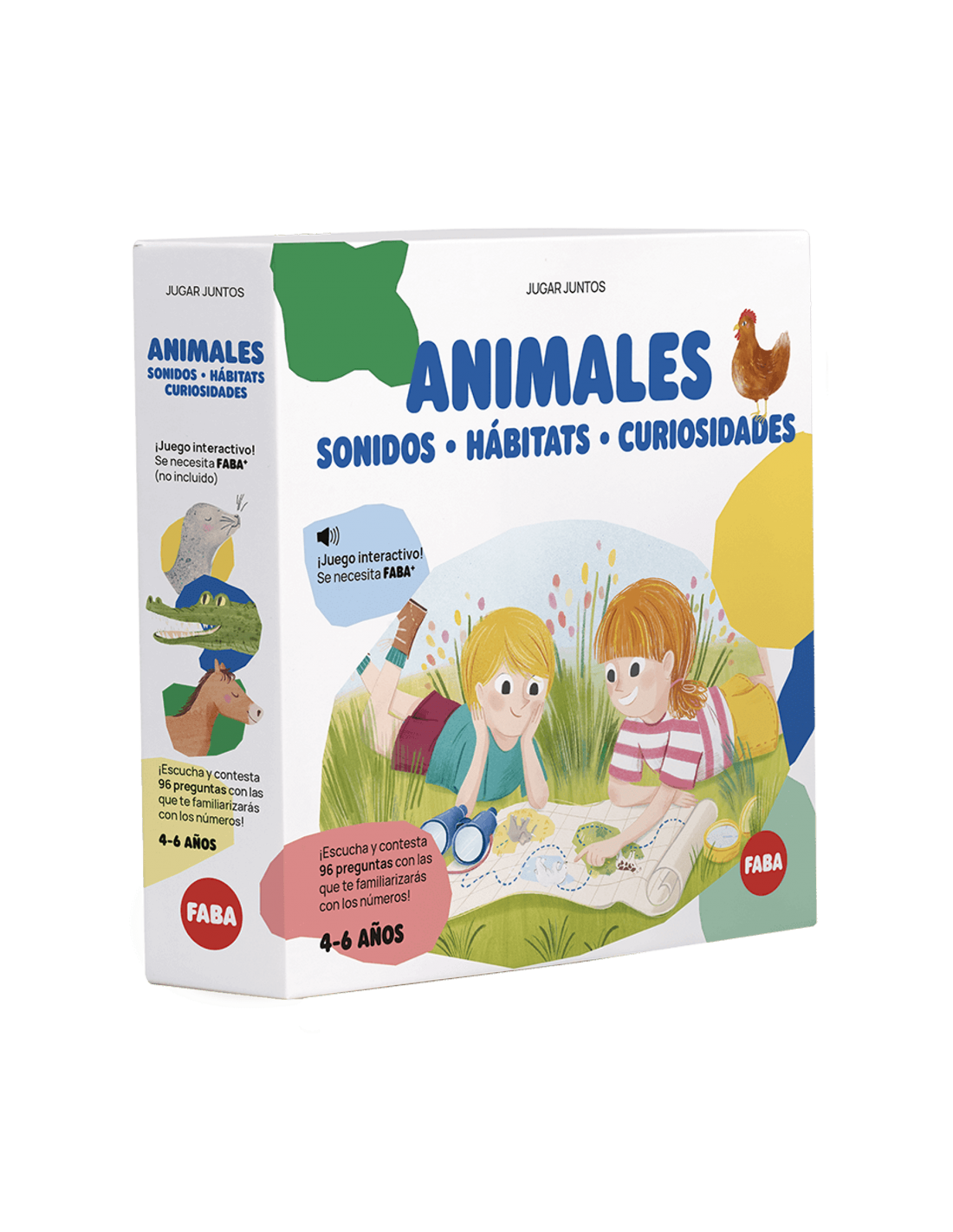 Únete a los exploradores Carlos y Sofía en este juego interactivo FABA y acompaña a los niños y las niñas en el descubrimiento de los hábitats del Polo Norte, la sabana y la granja. Un viaje lleno de curiosidades sobre los animales y sus entornos, pensado para estimular la imaginación y el aprendizaje en la franja de edad de 4 a 6 años. Gracias a 3 escenarios de juego, 4 cartas de respuesta y 96 preguntas para escuchar, cada partida será siempre nueva y envolvente. Este producto no solo divierte, sino que estimula el lenguaje, entrena la comprensión y el razonamiento, fortalece el pensamiento lógico y fomenta la creatividad. Con FABA, cada juego se convierte en una oportunidad educativa: identificar los animales, reconocer sus características y descubrir sus hábitats se convierte en una experiencia sencilla y apasionante. Diseñado con atención al proceso evolutivo, el juego interactivo FABA ofrece el estímulo adecuado en el momento justo, transformando el aprendizaje en una aventura emocionante. ¡Listos, preparados, fuera!