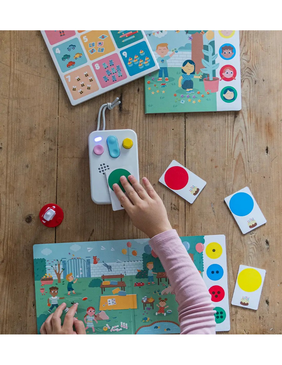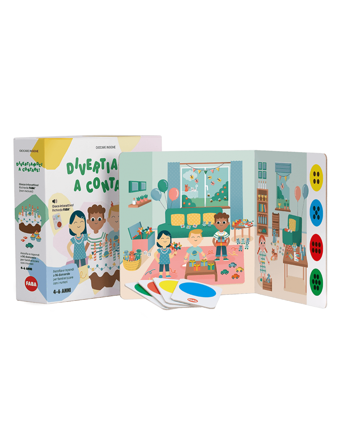 La casa y el jardín están llenos de decoraciones, dulces y amigos listos para celebrar. Con este juego interactivo FABA, los niños y las niñas podrán vivir la magia de la fiesta mientras aprenden a familiarizarse con los números. A través de 3 escenarios de juego, 4 cartas de respuesta y 96 preguntas para escuchar, los pequeños exploradores se divertirán contando los regalos, descubriendo el botín de la búsqueda del tesoro y realizando sencillas sumas y restas. ¡Cada partida será siempre nueva y estimulante! Pensado para la franja de edad de 4 a 6 años, este juego entrena la comprensión y el razonamiento, desarrolla el pensamiento lógico y fomenta la creatividad. Como todos los productos FABA, está diseñado para acompañar a los niños y las niñas en su proceso evolutivo, proporcionando el estímulo adecuado en el momento oportuno. Una experiencia educativa que une diversión y aprendizaje, transformando una fiesta especial en una aventura que estimula el lenguaje y despierta la curiosidad.
