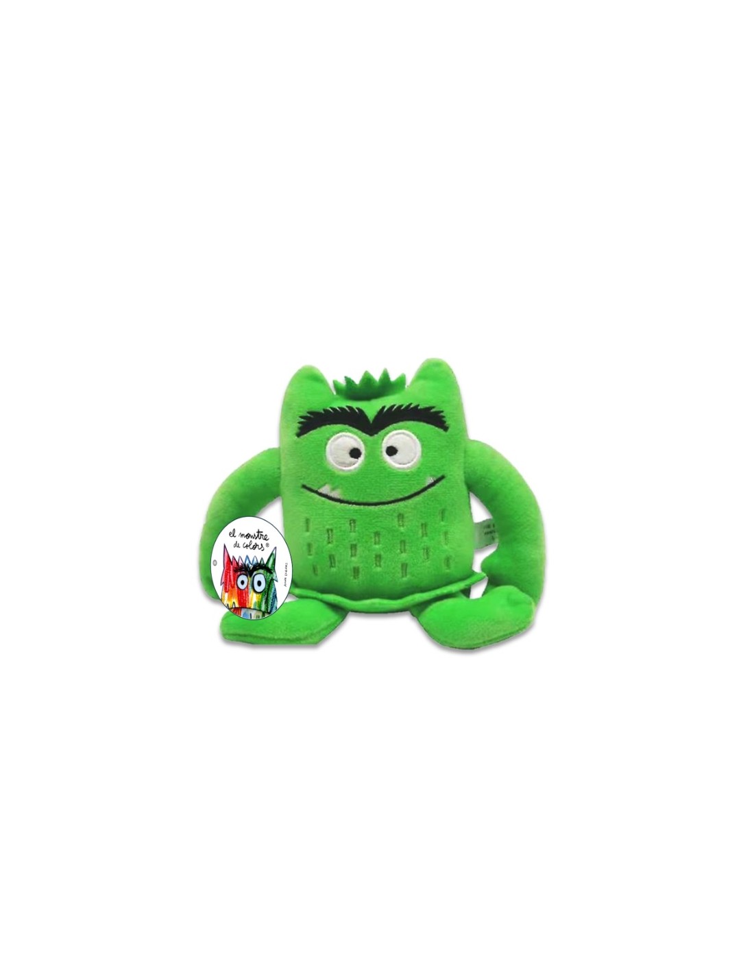 Este adorable peluche verde de 15 cm representa la calma, una de las emociones más reconfortantes del libro El Monstruo de Colores de Anna Llenas.