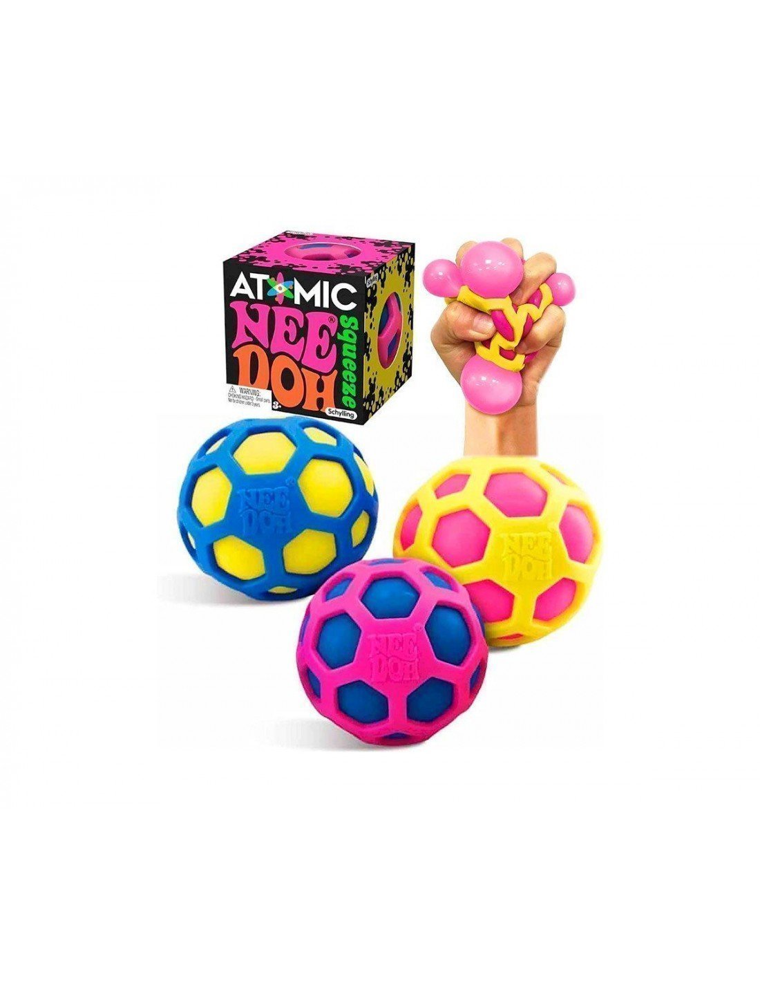 La Needoh Atómica es una bola sensorial irresistible que engancha desde el primer apretón. Al estrujarla, la sustancia viscosa del interior sale a través de sus orificios formando pequeñas burbujas de colores que fascinan a peques y mayores.