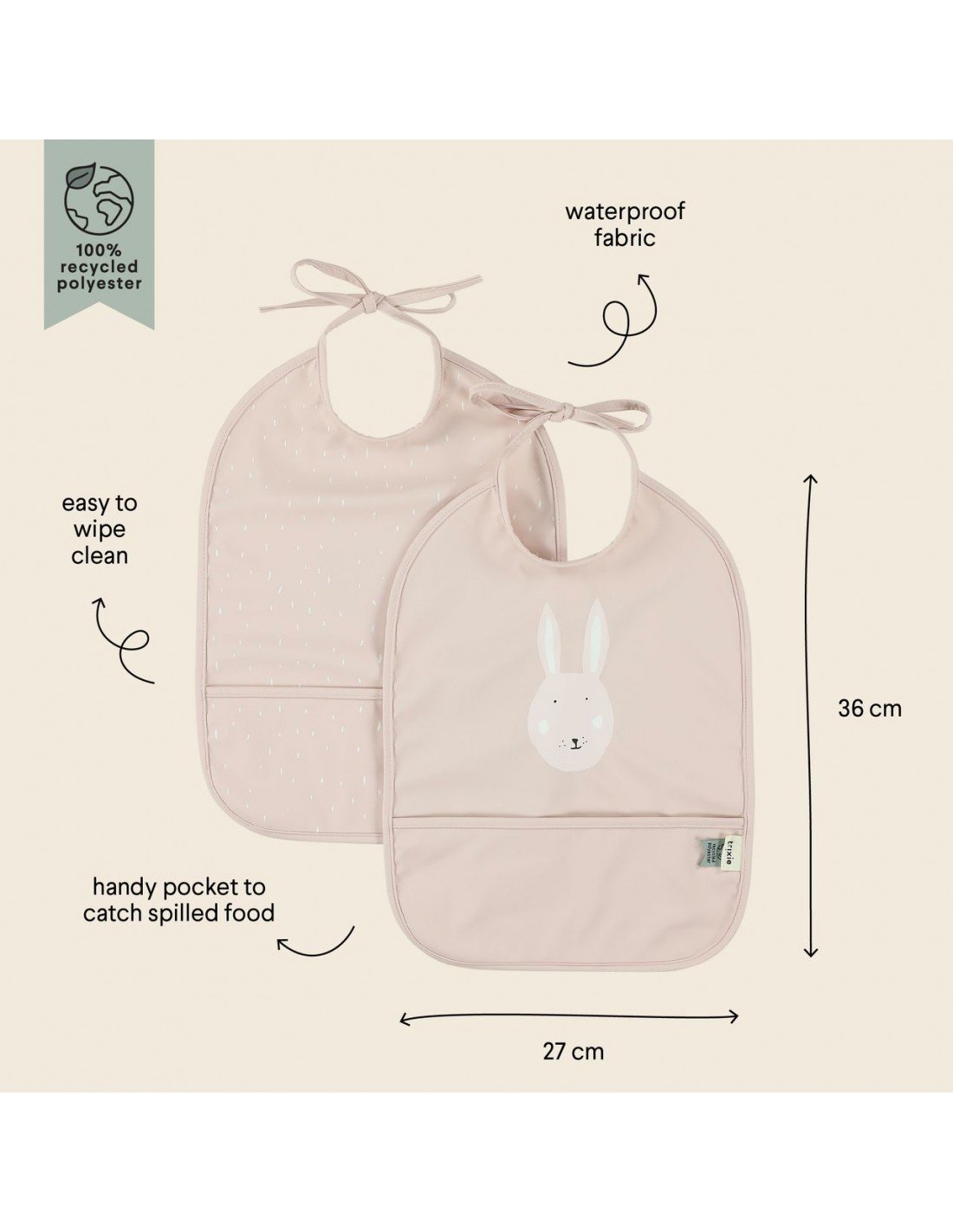¡Qué bien lo pasamos en la mesa con tu animal favorito! Este divertido juego de 2 baberos mantiene limpia la ropa del peque mientras disfruta de una rica comida, bebida o tentempié. El práctico bolsillo asegura que todo lo que se caiga quede bien recogido, evitando los grandes desastres. Viene con unos prácticos cordones de cierre que hacen se pueda ajustar a medida que el niño crece. Más buenas noticias: ¡el tejido está hecho de poliéster 100 % reciclado y es impermeable! Es fácil de limpiar y ahorra mucho tiempo de lavado o limpieza. , recubrimiento revestimiento de poliuretano