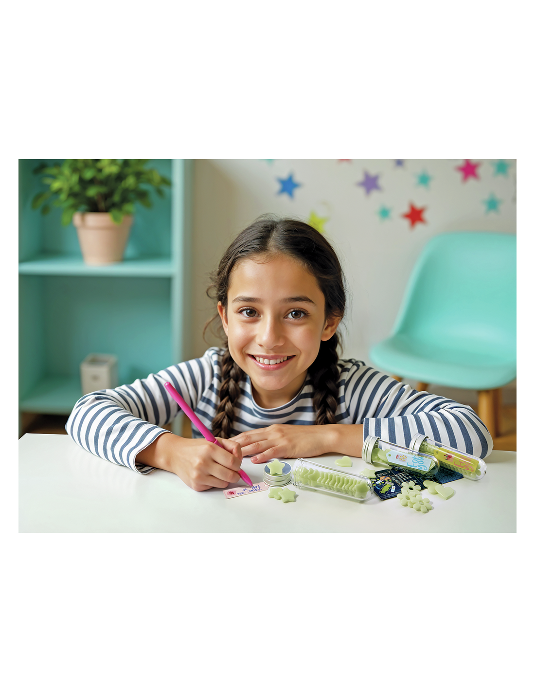 ¡Haz brillar tu amor con las Estrellas que Brillan en la Oscuridad de Wish Lab! Este encantador set incluye 18 vibrantes estrellas luminosas y una etiqueta personalizada para mensajes, que permiten a los niños expresar su creatividad mientras envían notas llenas de cariño a sus seres queridos. Las estrellas que brillan crean una atmósfera mágica, perfecta para iluminar cualquier espacio. Gracias a sus pestañas adhesivas fáciles de usar, decorar paredes o techos es muy sencillo. Este delicioso set inspira el juego imaginativo y la expresión emocional, convirtiéndose en un complemento ideal para dormitorios o celebraciones especiales.