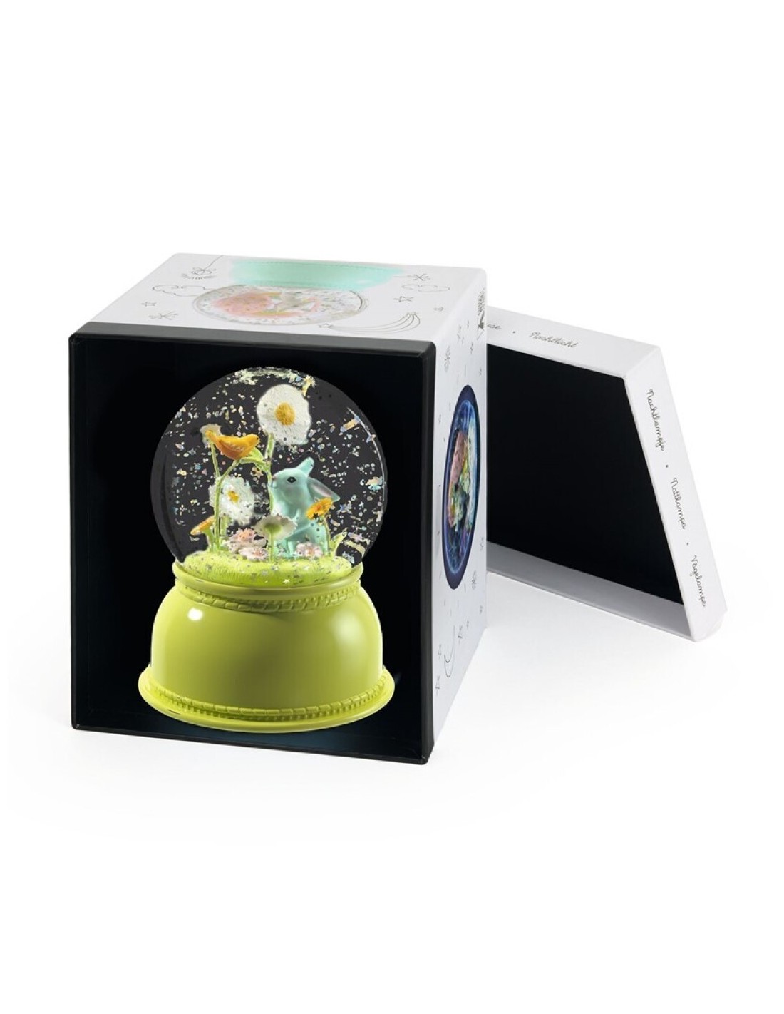 ¡Transforma la habitación de tu genio en un escenario de cuento con la Lámpara Bola de Conejo de Djeco! Esta encantadora lámpara no solo ilumina suavemente, sino que también crea un ambiente mágico gracias a su luz LED multicolor y el delicado movimiento de la purpurina en su interior.