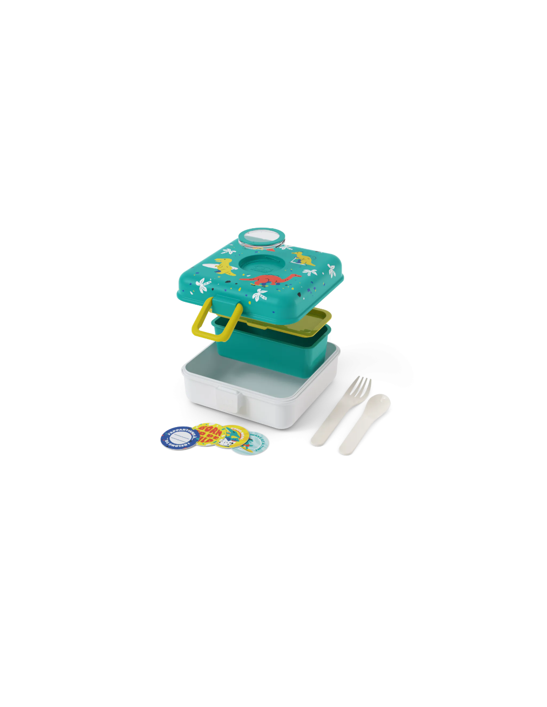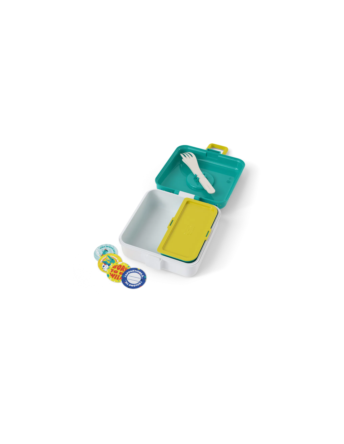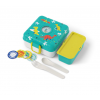 ¡La lunch box niños Snacky está llena de sorpresas! Debajo de la tapa se esconden un tenedor y una cuchara para que puedas comer como un adulto. Incluso hay una cajita extraíble con tapa, ¡para que puedas separar la comida o añadir pequeños extras!