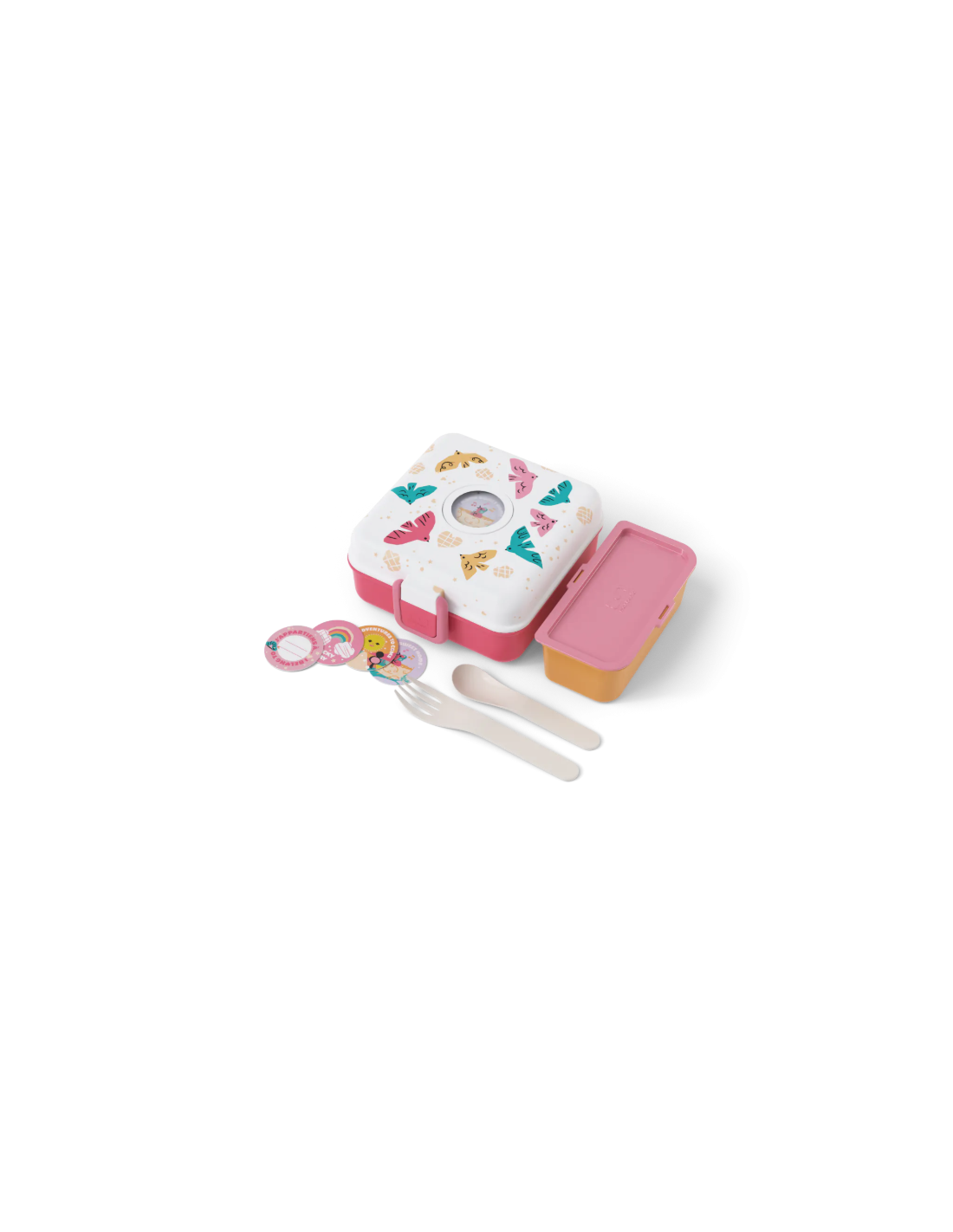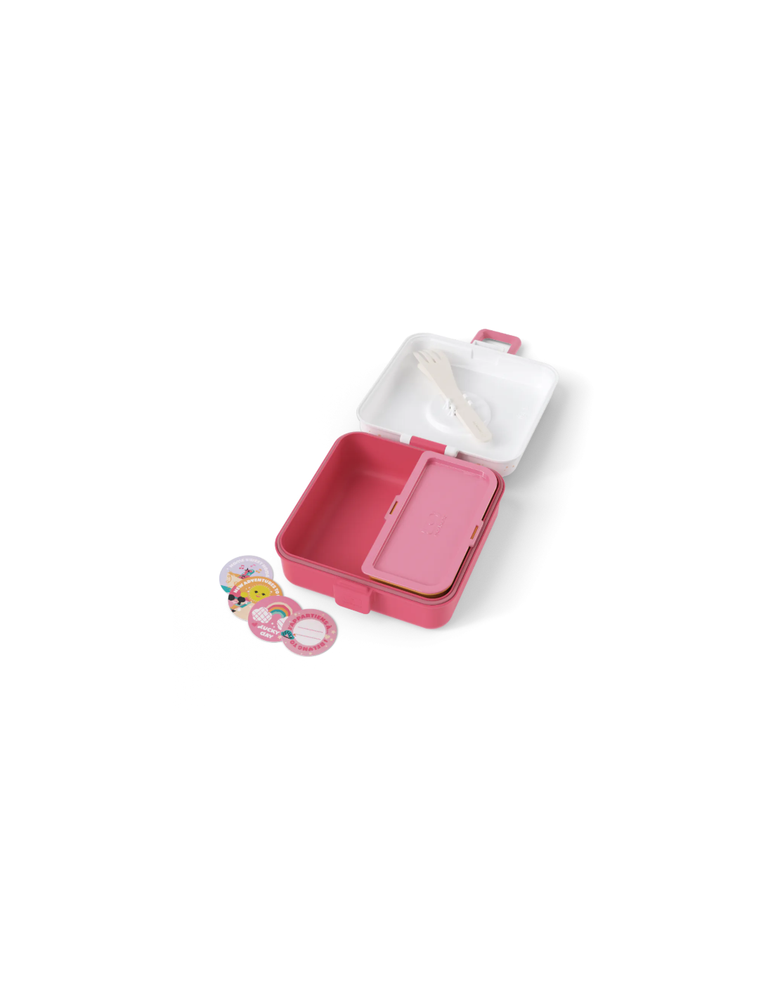 ¡La lunch box niños Snacky está llena de sorpresas! Debajo de la tapa se esconden un tenedor y una cuchara para que puedas comer como un adulto. Incluso hay una cajita extraíble con tapa, ¡para que puedas separar la comida o añadir pequeños extras!