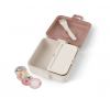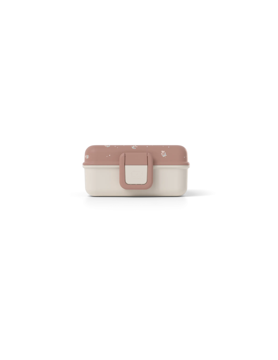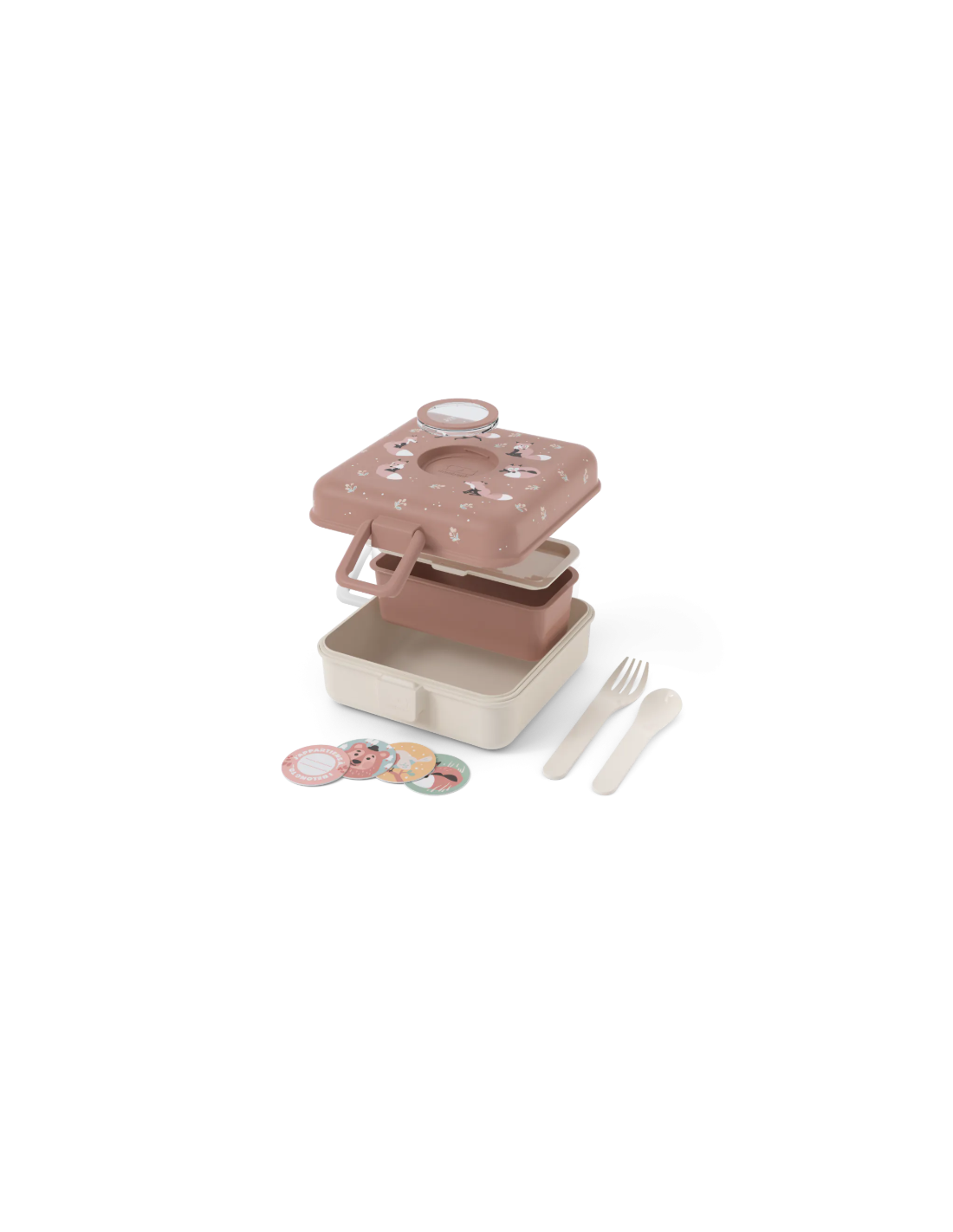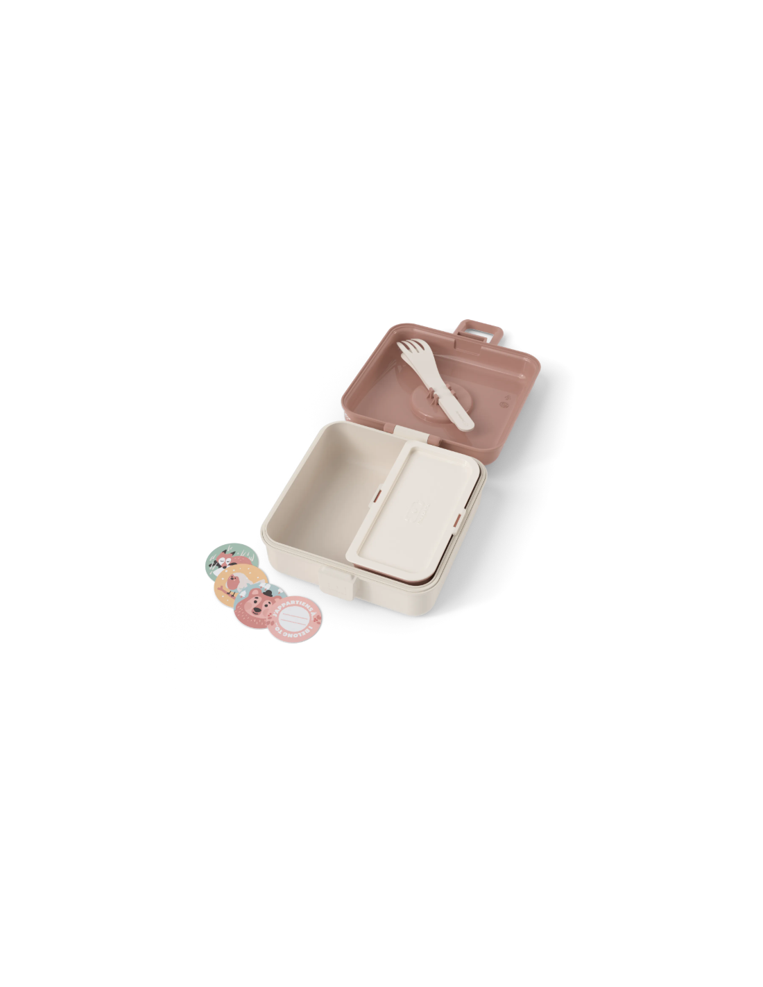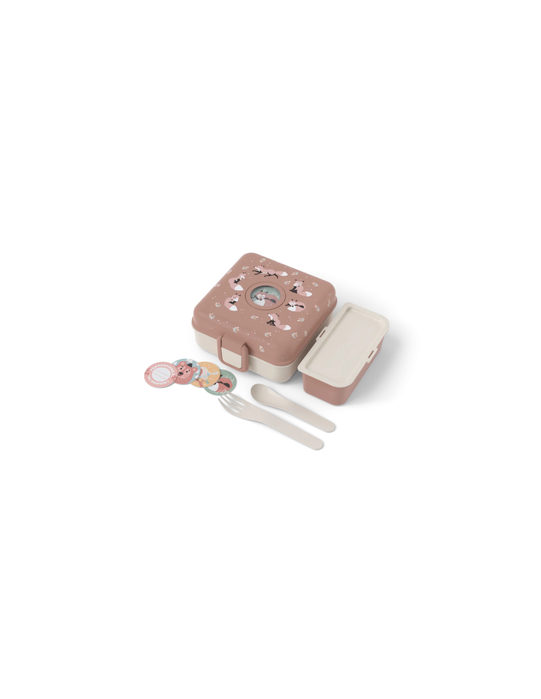 ¡La lunch box niños Snacky está llena de sorpresas! Debajo de la tapa se esconden un tenedor y una cuchara para que puedas comer como un adulto. Incluso hay una cajita extraíble con tapa, ¡para que puedas separar la comida o añadir pequeños extras!