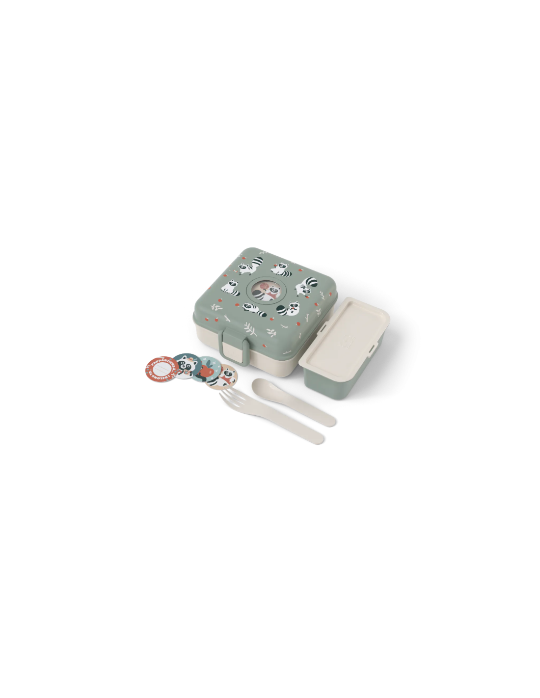 ¡La lunch box niños Snacky está llena de sorpresas! Debajo de la tapa se esconden un tenedor y una cuchara para que puedas comer como un adulto. Incluso hay una cajita extraíble con tapa, ¡para que puedas separar la comida o añadir pequeños extras!