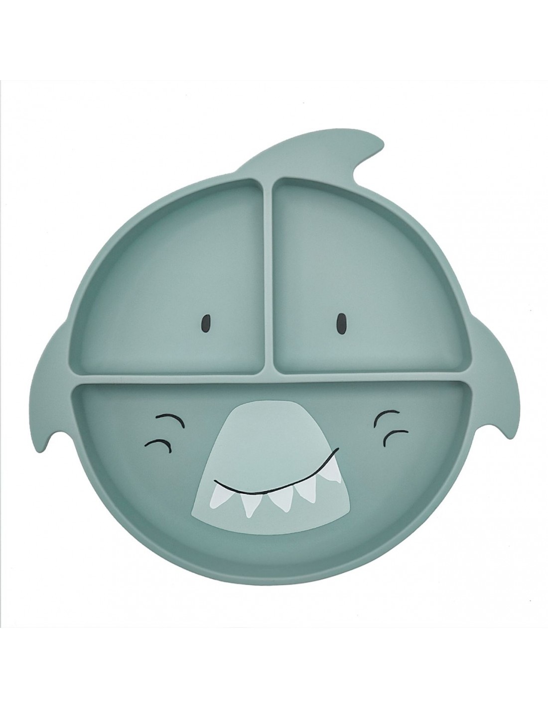 Plato con 3 compartimentos de silicona con ventosa - Tiburón