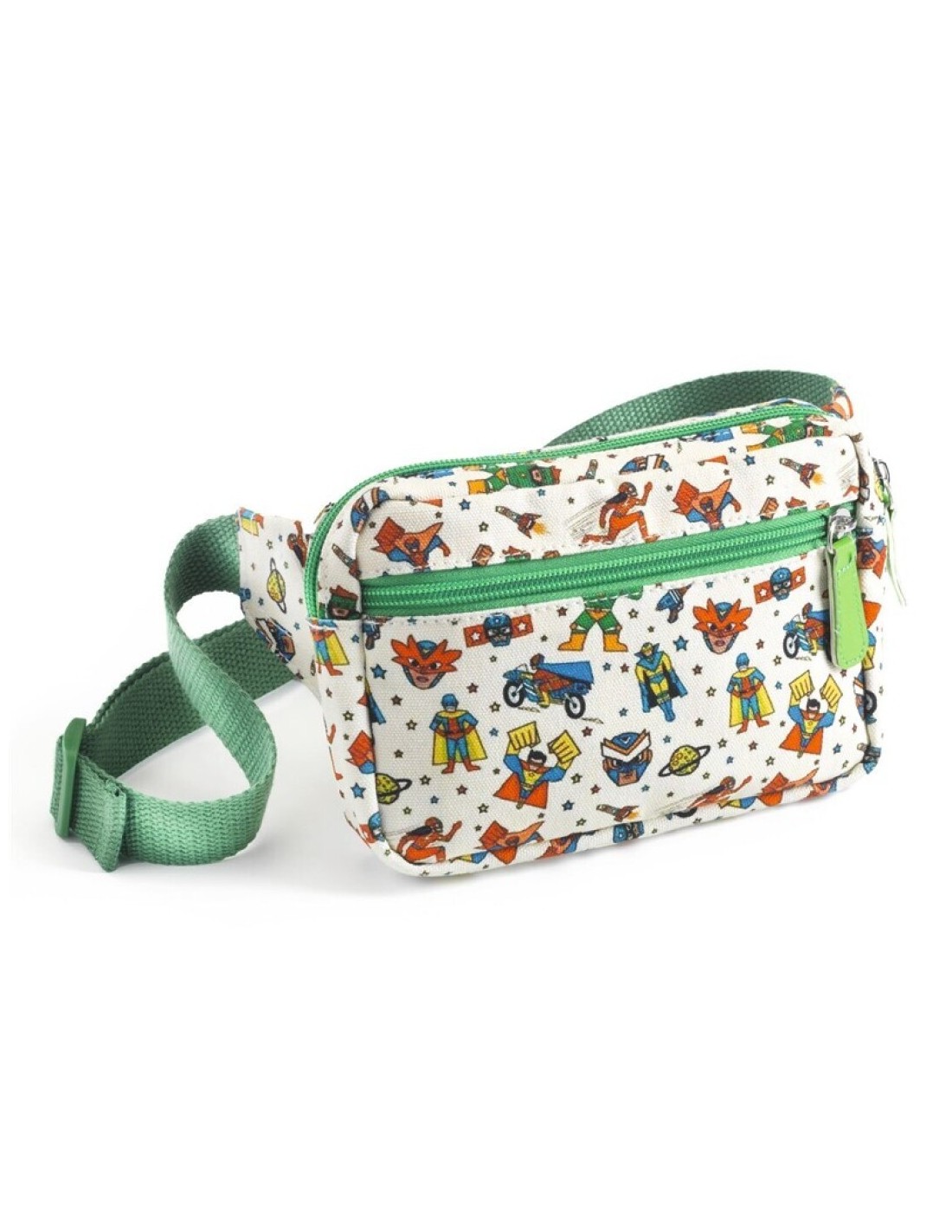 Con un estampado lleno de acción, personajes y detalles inspirados en el universo de los superhéroes, invita a imaginar historias mientras la llevan puesta. Su tamaño es ideal para guardar pequeños objetos, tesoros o lo imprescindible para sus misiones diarias.