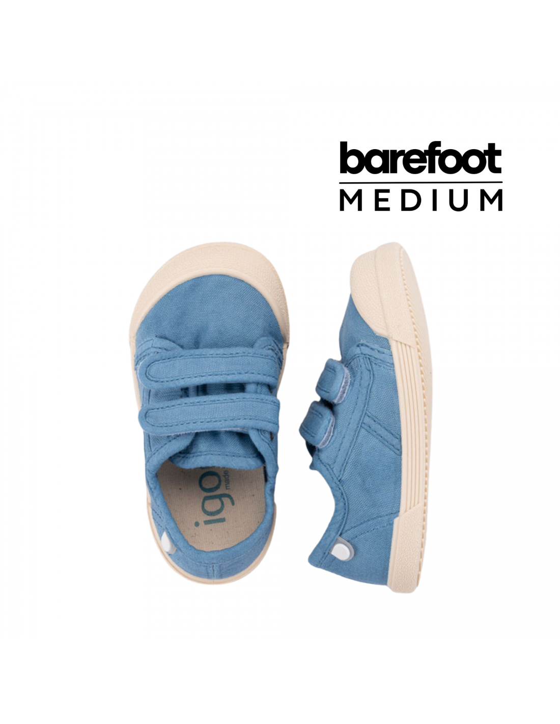 Su diseño tipo barefoot permite que el pie se mueva con libertad, respetando su desarrollo natural. La suela es fina y flexible, facilitando el contacto con el suelo y mejorando el equilibrio, mientras que la puntera amplia deja espacio para que los dedos se expandan sin limitaciones.
