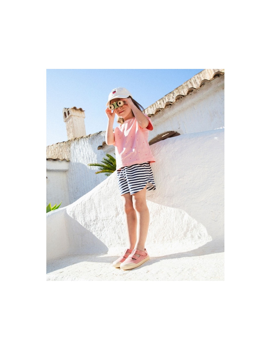 Este modelo tipo sandalia en tono rosa combina ligereza y comodidad con un diseño funcional que permite una buena ventilación del pie. Su cierre de velcro facilita el ajuste y fomenta la autonomía de los peques, permitiéndoles ponerse y quitarse el calzado de forma sencilla.