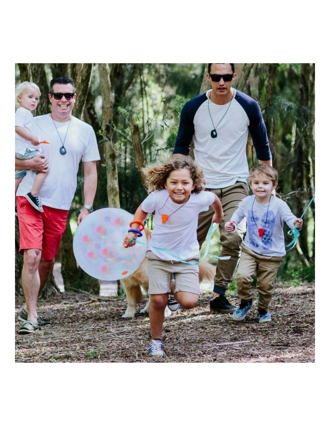 Recomendado por terapeutas ocupacionales, este colgante puede utilizarse como apoyo sensorial para que el niño disponga de una herramienta accesible, cómoda y discreta. Es una herramienta de autorregulación sensorial pensada para niños a partir de 3 años. Su diseño llamativo y fácil de manipular lo convierte en un recurso práctico para acompañar momentos de nerviosismo, frustración o emociones intensas, ofreciendo una vía segura y funcional para la estimulación oral.