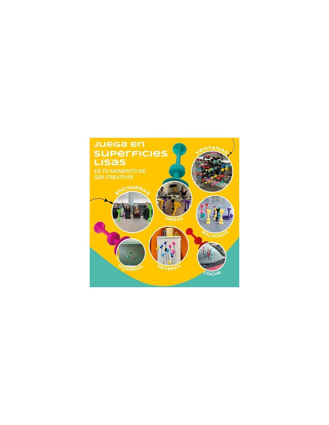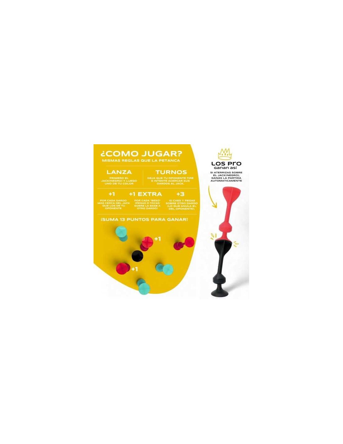 Imprescindible para los amantes de los juegos de lanzamiento, los desafíos al aire libre y los giros creativos en clásicos como los dardos o la petanca. Reinventado para una diversión sin límites en suelos, paredes, ventanas y mucho más.