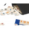 Incluye 106 fichas numeradas y comodines, manteniendo la esencia del juego original en un formato más práctico.