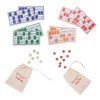 90 fichas en blanco: para cubrir los números en los cartones, almacenadas en dos bolsas de tela para facilitar su manejo.