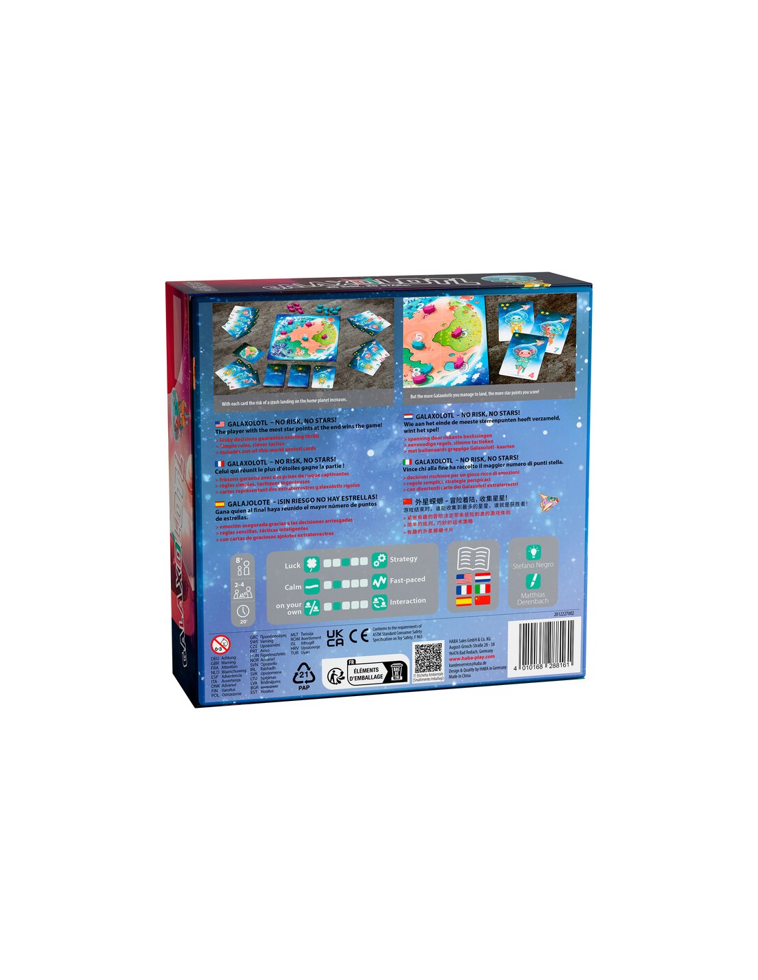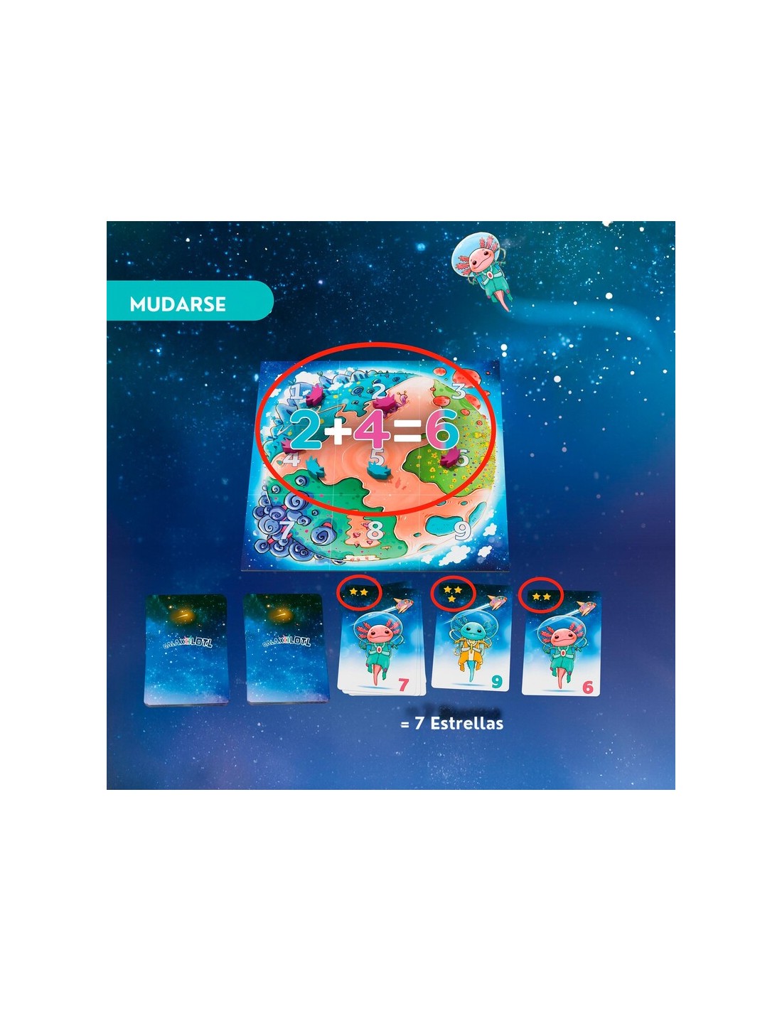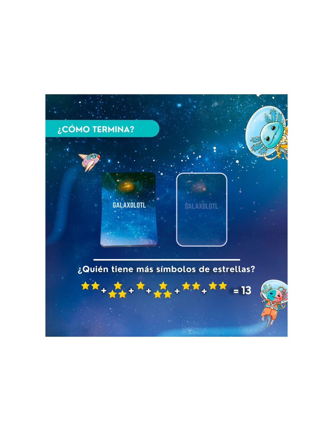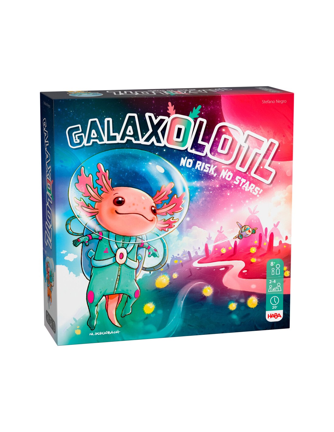 Galaxolotl es un juego de mesa familiar lleno de emoción, decisiones rápidas y mucha interacción, ambientado en un universo espacial tan colorido como sorprendente. En él, los jugadores deberán avanzar por la galaxia recogiendo estrellas… pero cuidado, ¡arriesgar demasiado puede hacerte perderlo todo!