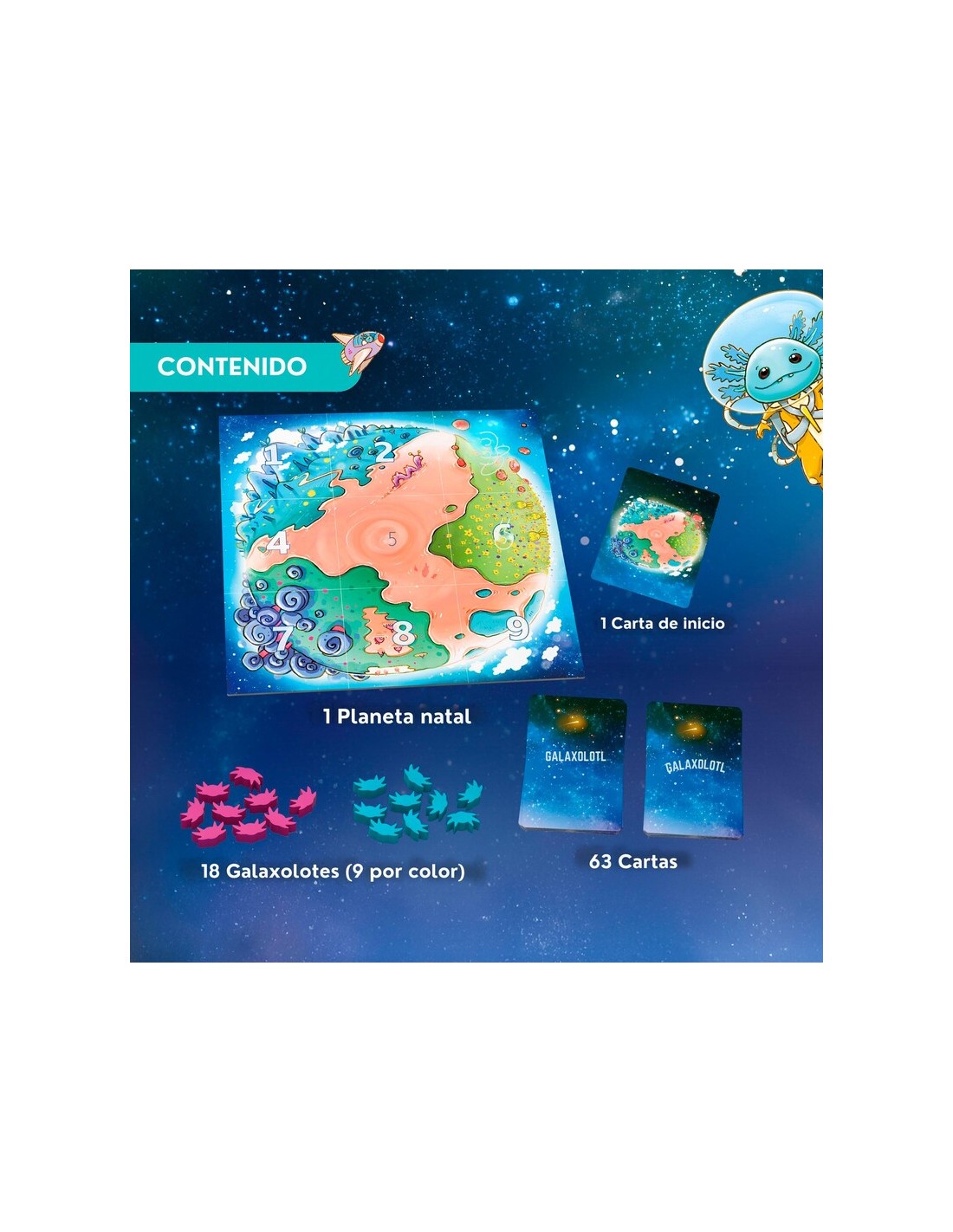 Con reglas accesibles y partidas dinámicas, Galaxolotl es perfecto para introducir a los niños y niñas en juegos de toma de decisiones, gestión del riesgo y estrategia ligera, sin perder nunca el componente divertido.